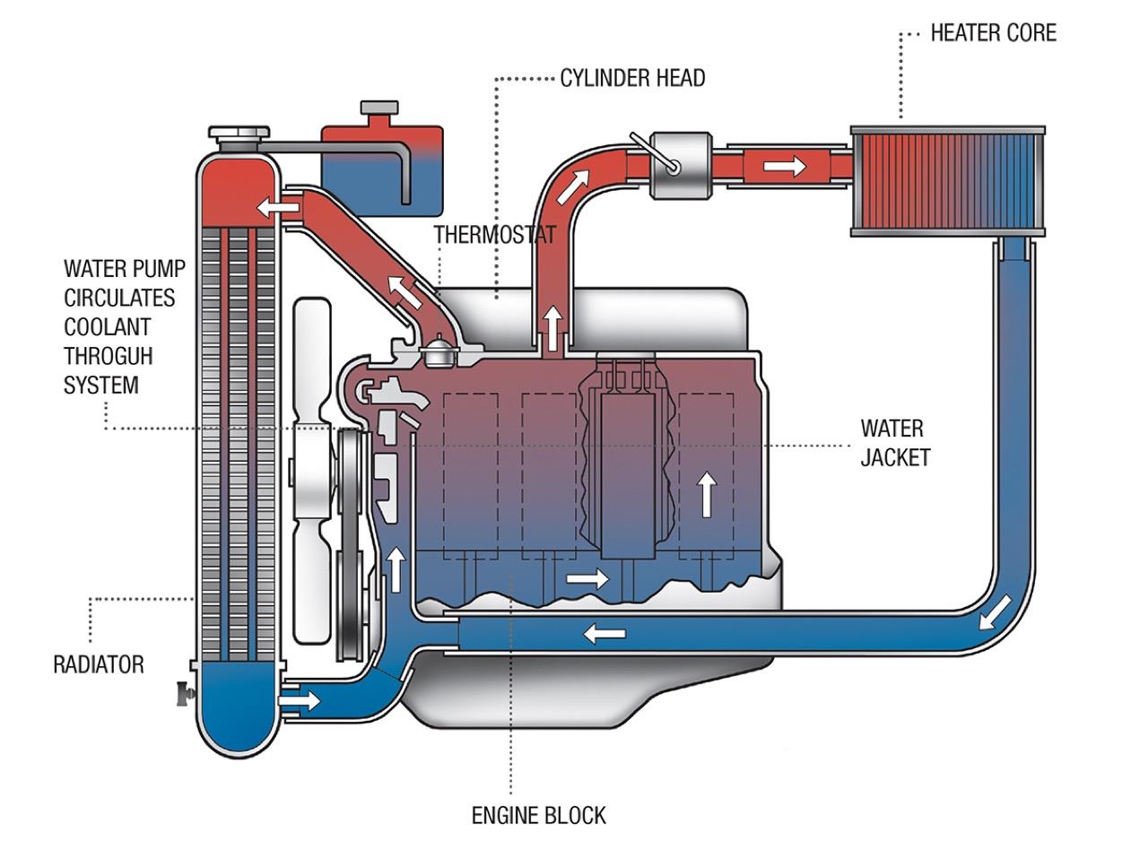 เนื่องจากขณะที่เครื่องยนต์ทำงานจะเกิดความร้อนทั้งจากการเสียดสีและการจุดระเบิด นอกจากน้ำมันเครื่องที่ใช้สำหรับหล่อลื่นชิ้นส่วนต่างๆ ภายในห้องเครื่องยนต์แล้ว (Lubricating System) ระบบหล่อเย็นหรือระบบระบายความร้อน coolant System ช่วยลดอุณหภูมิในบริเวณที่มีความร้อนสูงเช่น ผนังกระบอกสูบ ระหว่างลูกสูบ และกระบอกสูบ ความร้อนบริเวณนี้จะมีมากเป็นพิเศษ ดังนั้น เครื่องยนต์จึงต้องออกแบบ ให้บริเวณผนังของกระบอกสูบ และบริเวณต่างๆ ที่มีความร้อนมาก เป็นโพรงช่องว่าง เพื่อที่จะให้น้ำไหลเวียนถ่ายเทเอาความความร้อนออกจากบริเวณนั้น ในขณะที่เครื่องกำลังทำงานอยู่ อันเป็นที่มาของระบบระบายความร้อนในรถยนต์ที่ถือเป็นอุปกรณ์ที่มีความสำคัญในลำดับต้นๆ ของการใช้รถยนต์