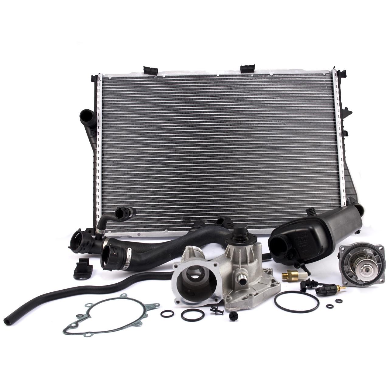 ปั๊มน้ำ (Water pump) วาล์วน้ำ (Thermostat) ท่อยางหม้อน้ำ (Radiator hoses), หม้อน้ำ (Radiator) พัดลมระบายความร้อน (Fan) ทำงานร่วมกันนับตั้งแต่เริ่มสตาร์ตเครื่องยนต์ ตัวปั๊มน้ำก็จะทำงานโดยได้รับแรงหมุนจากสายพาน ซึ่งต่อมาจากการหมุนพูลเล่ย์ ของแกนเพลาข้อเหวี่ยง การที่ปั๊มน้ำทำงาน เป็นผลทำให้มีน้ำไหลเวียนอยู่ในโพรงผนังของเสื้อสูบ และบริเวณที่มีความร้อน