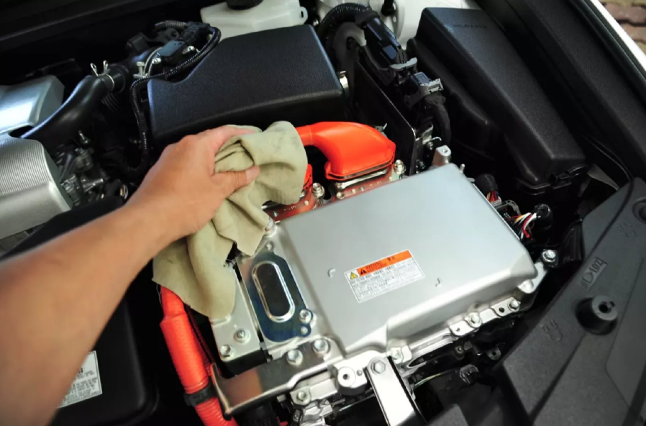 สำหรับรถยนต์ Hybrid อย่าง Lexus ES Hybrid หรือ Toyota Camry Hybrid / Honda Accord Hybrid ต้องระวังเป็นอย่างมาก แนะนำให้เช็ดแห้งสถานเดียว ห้ามเอาสายยางไปฉีดน้ำใส่ไปตรงๆ เครื่องยนต์ อุปกรณ์พวกตัวแปรงกระแสไฟ รวมถึงท่อทางเดินต่างๆ ในรถ Hybrid เกี่ยวข้องกับระบบไฟฟ้าและไม่ชอบความชื้นเป็นอย่างยิ่ง เช็ดแห้งอย่างเดียวเท่านั้นสำหรับรถเครื่องยนต์ผสมมอเตอร์ไฟฟ้าแบบ Hybrid หากราดน้ำลงไป ความชื้นมาเยือนกล่องแปลงกระแสไฟฟ้า หรือไหลเข้าไปในสายไฟสีส้มๆ อาจก่อปัญหารุนแรงให้กับรถของคุณได้ ใช้ฟองน้ำหรือผ้าชุบน้ำหมาดค่อยๆ เช็ดจนฝุ่นหมดไป