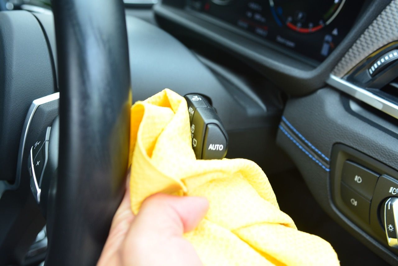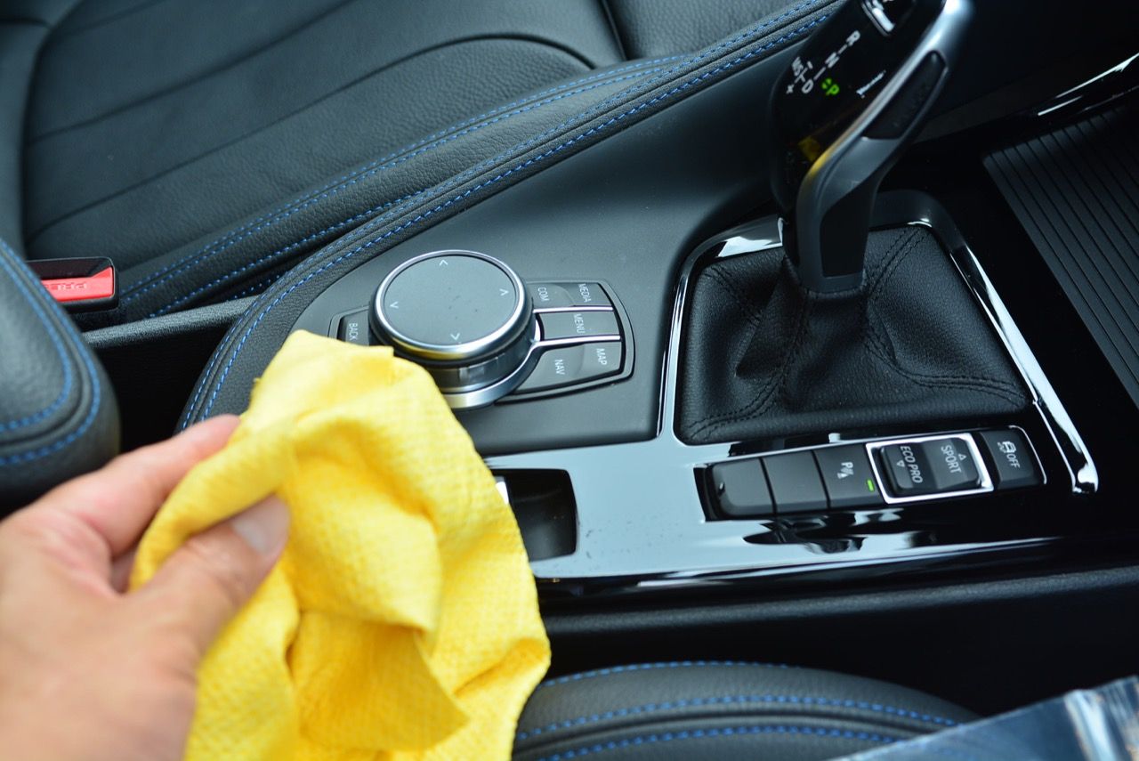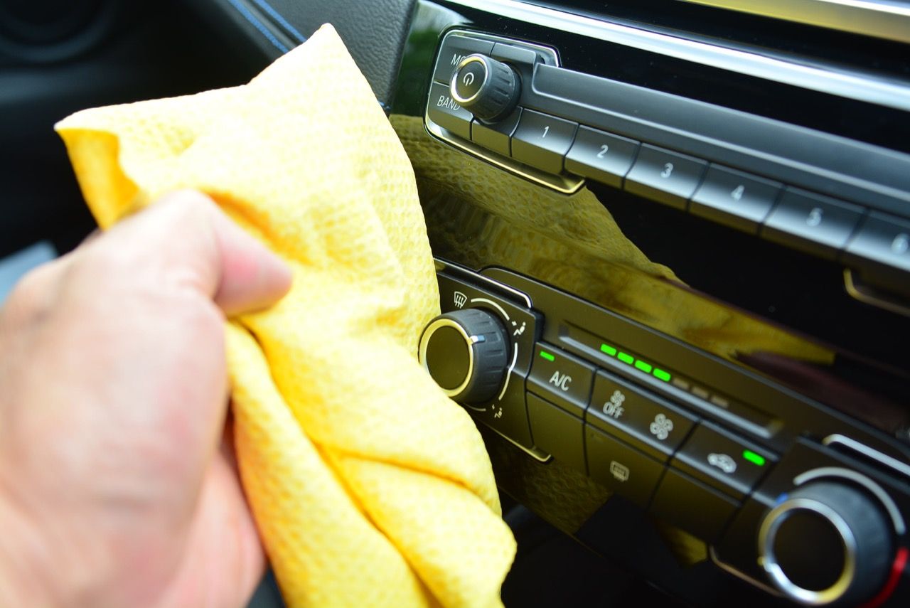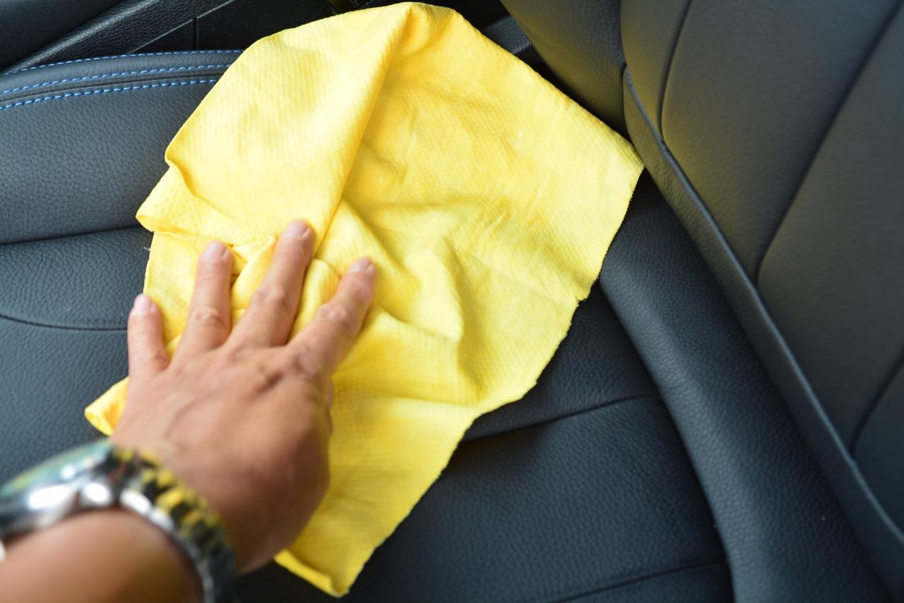 หาผ้าเช็ดรถที่ยังใหม่ชุบน้ำหมาดๆ หมั่นทำความสะอาดในจุดที่ต้องใช้มือจับหรือนั่งสัมผัสบ่อยครั้ง เช่น พวงมาลัย หัวเกียร์ ก้านไฟเลี้ยวและก้านที่ปัดน้ำฝน ปุ่มหรือสวิตช์ปรับระบบแอร์ หน้าจอระบบสัมผัส เบาะนั่ง แผงประตู พนักเท้าแขน พนักพิงศีรษะ รวมไปถึงการนำเอาพรมรองพื้นไปซักล้างทำความสะอาด
