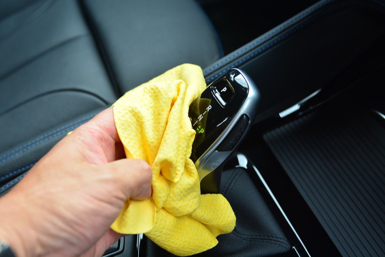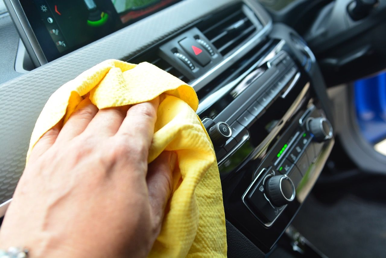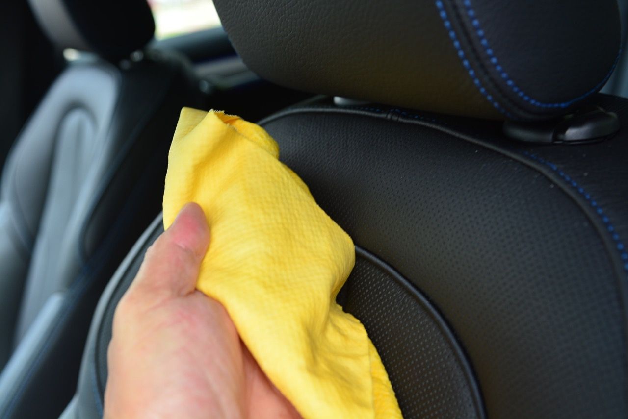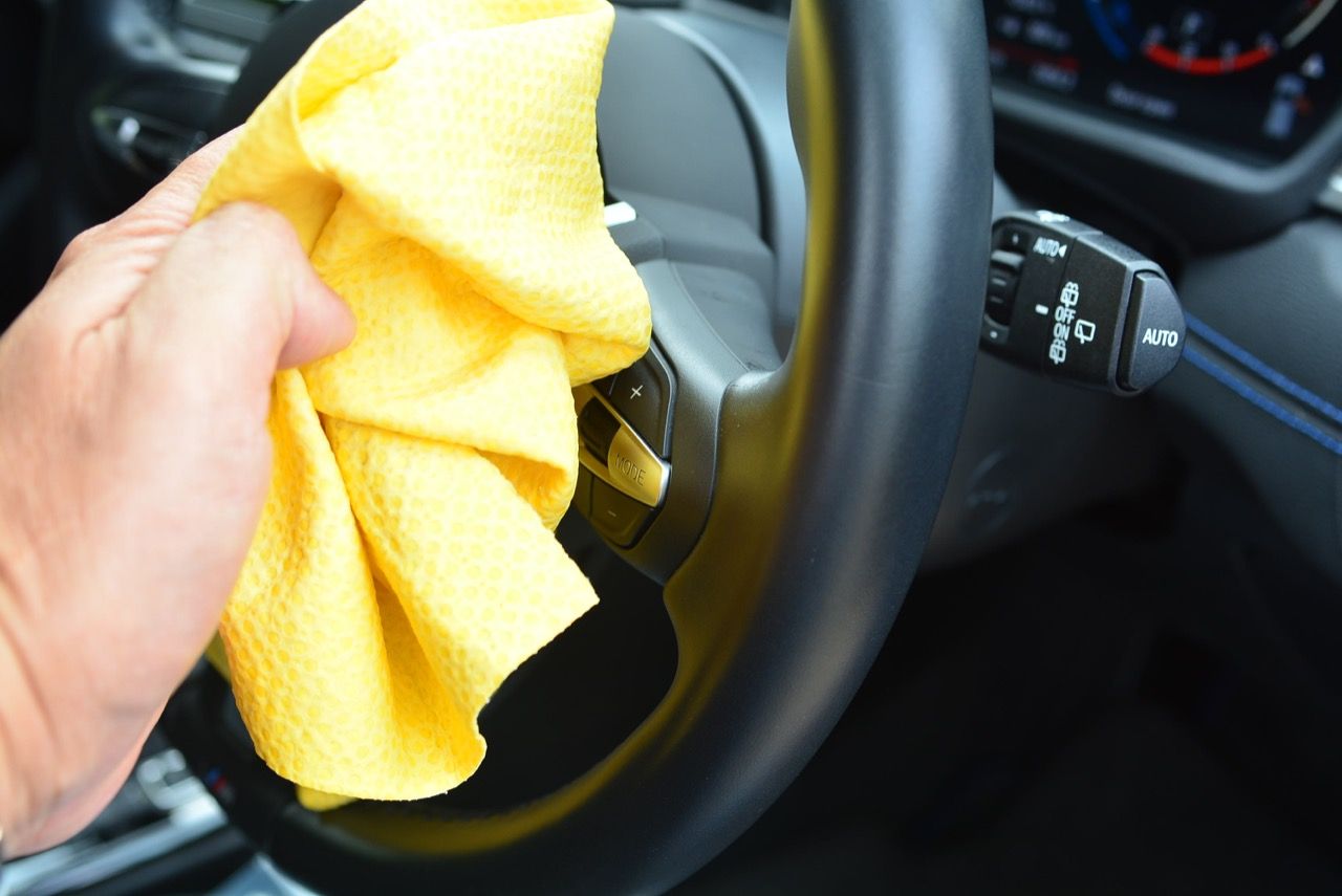 หาผ้าเช็ดรถที่ยังใหม่ชุบน้ำหมาดๆ หมั่นทำความสะอาดในจุดที่ต้องใช้มือจับหรือนั่งสัมผัสบ่อยครั้ง เช่น พวงมาลัย หัวเกียร์ ก้านไฟเลี้ยวและก้านที่ปัดน้ำฝน ปุ่มหรือสวิตช์ปรับระบบแอร์ หน้าจอระบบสัมผัส เบาะนั่ง แผงประตู พนักเท้าแขน พนักพิงศีรษะ รวมไปถึงการนำเอาพรมรองพื้นไปซักล้างทำความสะอาด