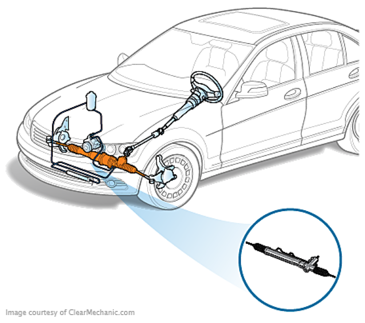 แร็คพวงมาลัย โดยเฉพาะพวงมาลัยแบบพาวเวอร์ทั้งปั๊มไฟฟ้าและปั๊มสายพาน ก็เป็นอีกอย่างหนึ่งที่จะต้องตรวจระบบรองรับพวกโช้คอัพ ลูกหมากปีกนก ยางรองรับห่อหุ้ม ควรเปลี่ยนถ้าพบความเสียหายหรือไม่แน่ใจ