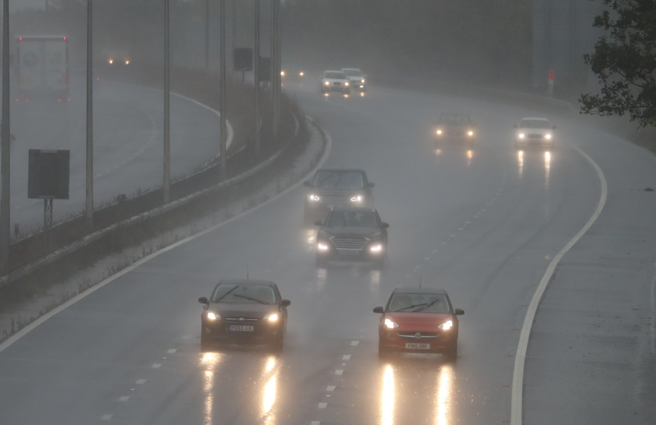 เมื่อฝนตก การมองเห็นจะย่ำแย่ลงมาก ยิ่งตกหนักมากเท่าไรก็ยิ่งมองเห็นได้แย่ลงมากเท่านั้น แสงจากไฟหน้า ไฟเลี้ยว ของรถคันอื่นในสภาวะที่ทัศนวิสัยไม่ดี มองเห็นได้ไม่ชัดหรือมองเห็นแค่ระยะใกล้ๆ อย่างไรก็ตาม ระบบไฟส่องสว่างช่วยทำให้การสังเกตการณ์ดีขึ้น ยกเว้นการเปิดไฟฉุกเฉินแล้ววิ่งปุเลงๆ ท่ามกลางสายฝนที่ซัดกระหน่ำ อาจทำให้รถยนต์คันอื่นเข้าใจผิดจนก่อให้เกิดอุบัติเหตุกันมามากต่อมาก