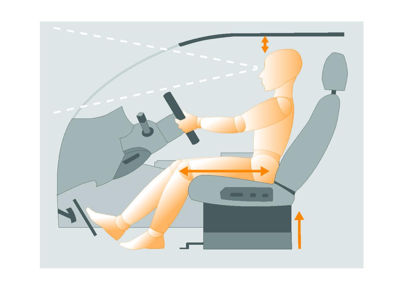 ปรับที่นั่งให้ถูกสุขลักษณะ นั่งแล้วไม่ปวดหลัง ไม่เครียด การนั่งแบบแขนสั้น ขายาว หรือร่นเบาะจนชิดกับพวงมาลัยมากจนเกินไป เห็นได้บ่อยในรถที่มีผู้สูงอายุขับ จะทำให้เกิดอาการปวดหลังเมื่อขับไปนานๆ ท่านั่งที่ถูกต้องก็คือ ดึงก้นให้ชิดกับเบาะ แผ่นหลังแนบกับพนักพิงหลัง ช่วงคอตรง ทำมุมประมาณ 15 องศากับพนักพิง ช่วงแขนและไหล่ทิ้งลงในท่าที่สบาย ช่วงงอของแขน ทำมุม 90-115 องศา ถือเอาความถนัดเป็นเกณฑ์ และจับพวงมาลัยในตำแหน่งมือซ้าย 9 นาฬิกา มือขวา 15 นาฬิกา การจับพวงมาลัยมือเดียว ไม่เกิดอะไรขึ้นก็แล้วไป แต่ถ้ามีอะไรตัดหน้าแล้วต้องใช้พวงมาลัยในการหักหลบ มือที่จับอยู่แค่ข้างเดียวจะทำให้คุณไปจบลงด้วยอุบัติเหตุ