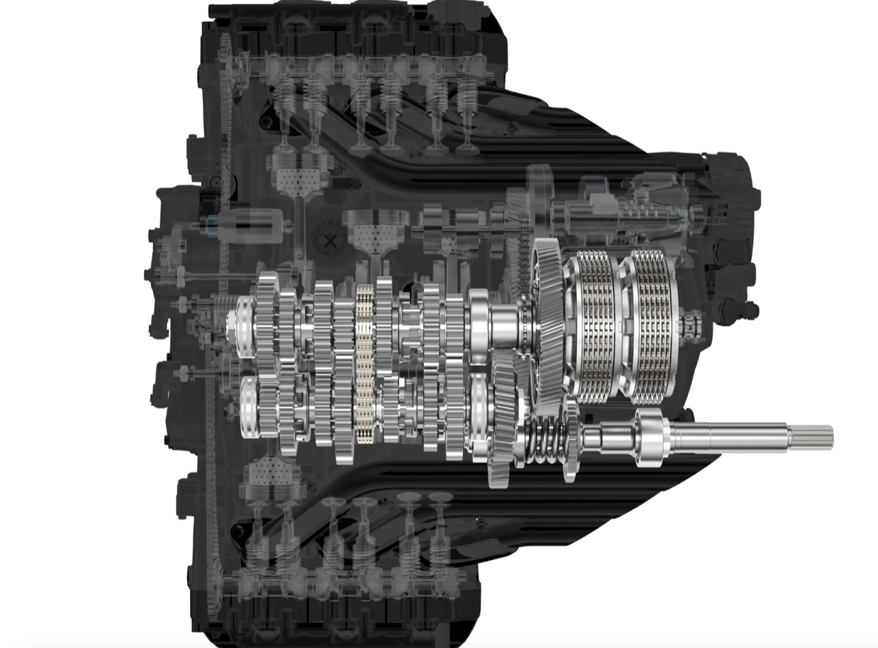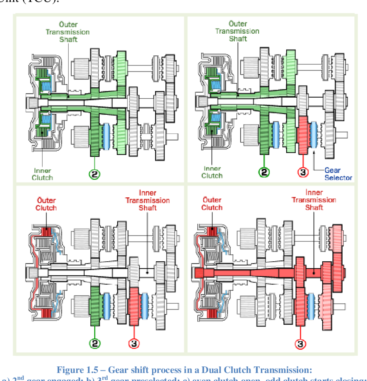 ดังนั้นในขณะที่เกียร์ 3 ทำงานอยู่ ชุดคลัตช์เฟืองเกียร์ 4 สามารถเข้าจับเฟืองขับเคลื่อนเตรียมรอไว้ได้เลย เพราะในขณะนั้นยังไม่มีกำลังส่งไปที่เฟืองเกียร์ 4 และเมื่อเวลาเหมาะสม ก็แค่ให้สมองกลสั่งเลิกจับคลัตช์เกียร์คี่ แล้วไปสั่งคลัตช์เกียร์เลขคู่ให้จับส่งกำลังแทน ผลที่ได้คือชิ้นส่วนมีการเขยื้อนตัวน้อย เมื่อมันเขยื้อนไม่มาก ก็สามารถเปลี่ยนเกียร์ได้ไว พลังถูกส่งไปยังล้ออย่างต่อเนื่องขึ้น Porsche เลยกลายเป็นค่ายแรกที่ใช้เกียร์บนหลักการ Dual-Clutch แบบนี้ในรถแข่งสนาม กับรุ่น 962C ซึ่งลงแข่งปี 1985 ส่วนรถเวอร์ชันถนนคนเดินดินซื้อใช้ได้รุ่นแรกที่ใช้คือ VW Golf R32 ปี 2003