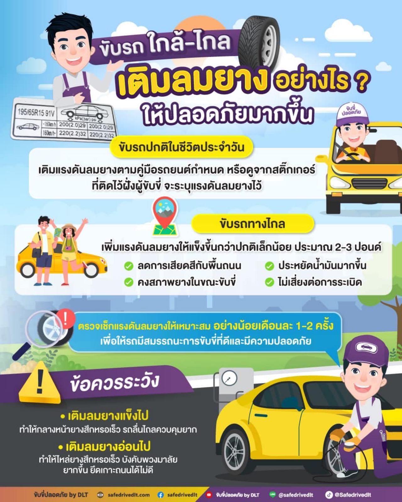 ผู้สื่อข่าวรายงานว่า แฟนเพจเฟซบุ๊ก ขับขี่ปลอดภัย by DLT ภายใต้การดูแลของ สำนักสวัสดิภาพการขนส่งทางบก ได้เผยแพร่ข้อมูลเกี่ยวยางรถยนต์ที่ถูกต้องว่าควรจะเติมยางแบบไหนช่วยให้กับขับขี่ปลอดภัยมากขึ้น โดยมีรายละเอียดดังนี้