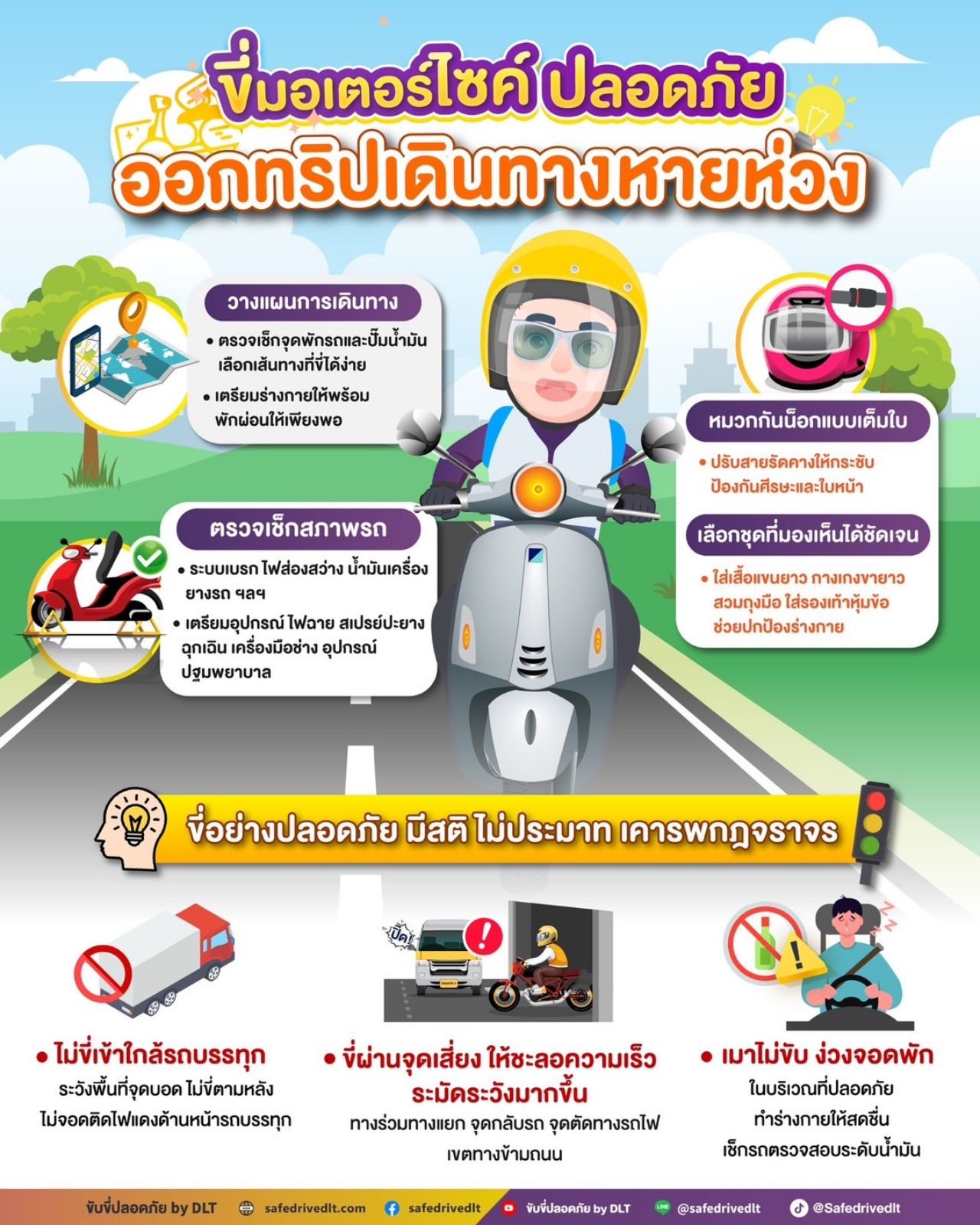 ทีมข่าวไทยรัฐออนไลน์ขอหยิบเทคนิคดีๆ จากสำนักสวัสดิภาพการขนส่งทางบกมาฝากสำหรับใครที่ต้องการเดินทางไกลด้วยมอเตอร์ไซค์คู่ใจ โดยมีรายละเอียดดังนี้