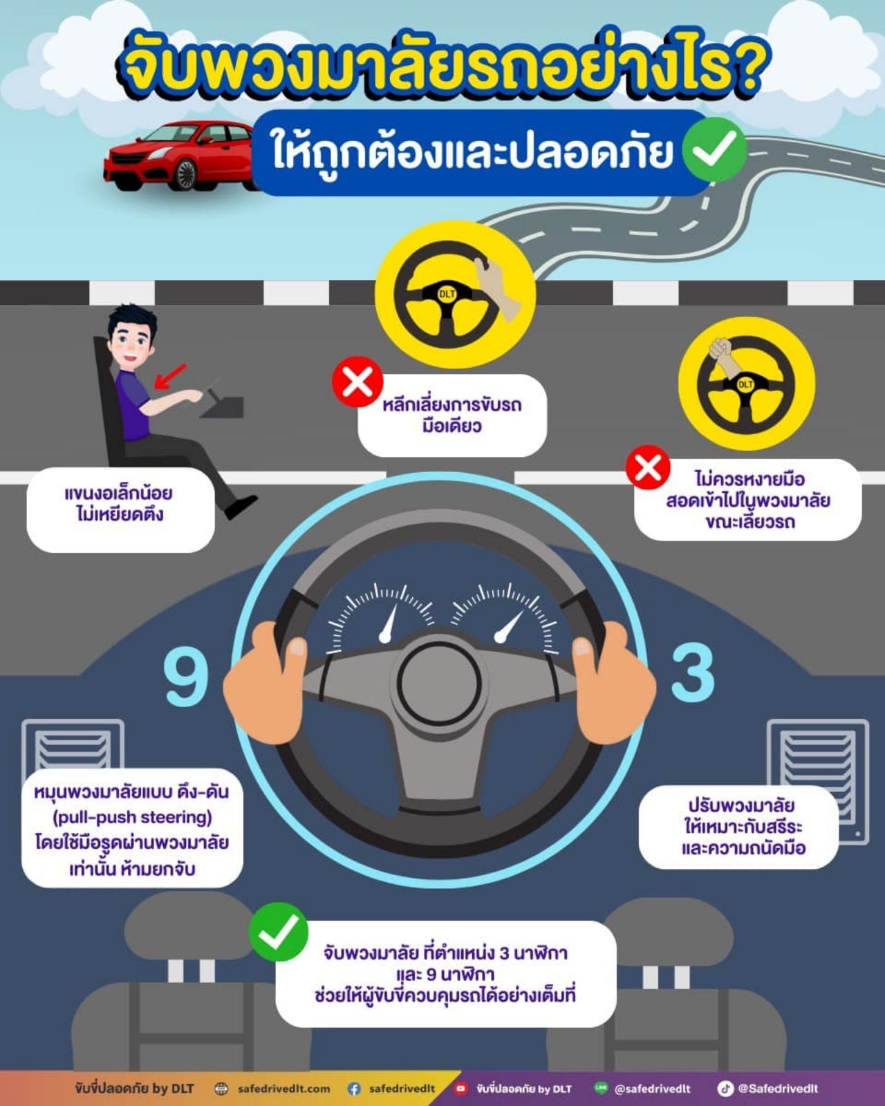 • จับพวงมาลัยรถด้วยมือสองข้าง