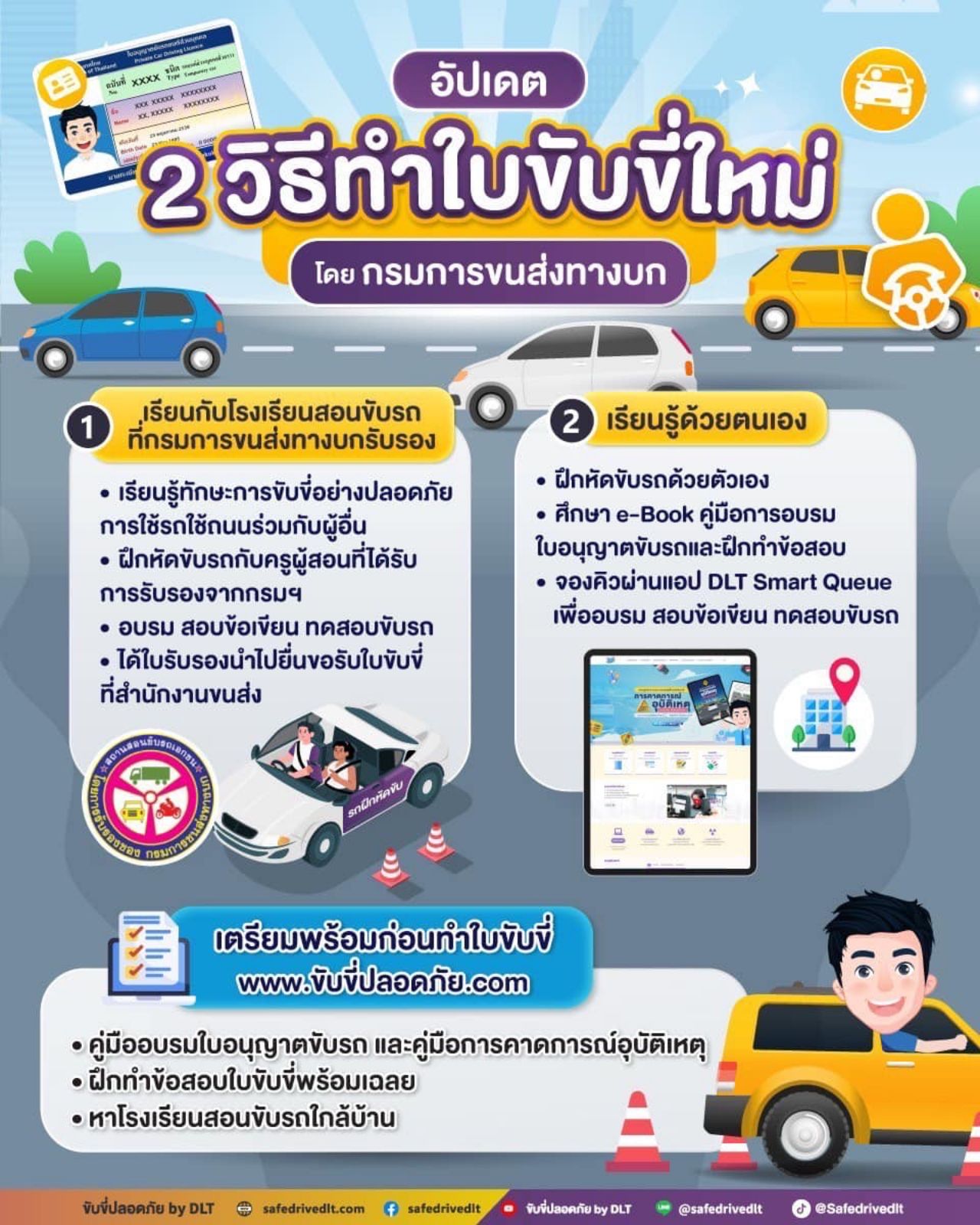 สำหรับเว็บไซต์ที่แนะนำก่อนทำใบขับขี่ ได้ที่เว็บไซต์ ขับขี่ปลอดภัย หรือ https://safedrivedlt.com โดยในเว็บดังกล่าวมีข้อมูลดังนี้