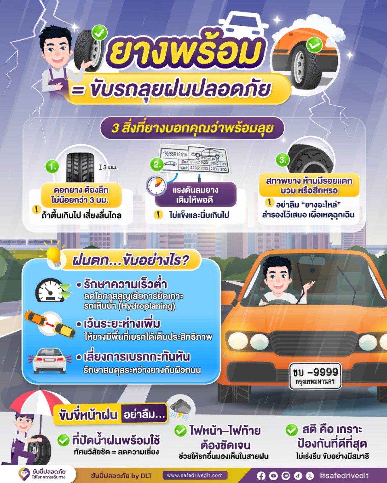 ประเทศไทยมีหลายฤดู แม้จะร้อน ร้อนมาก และร้อนที่สุดนั้นก็ยังมีฤดูฝน และพายุบ่อยมาก คนใช้รถยนต์ก็ควรต้องเพิ่มความระมัดระวัง เพราะบางครั้งก็ไม่ได้มีพายุแค่ช่วงหน้าฝนเท่านั้น "ทีมข่าวไทยรัฐออนไลน์" ขอนำข้อมูลดีๆ จาก ขับขี่ปลอดภัย by DLT กรมการขนส่งทางบก ที่เป็นข้อแนะนำสำหรับคนใช้รถช่วงหน้าฝน ดังนี้