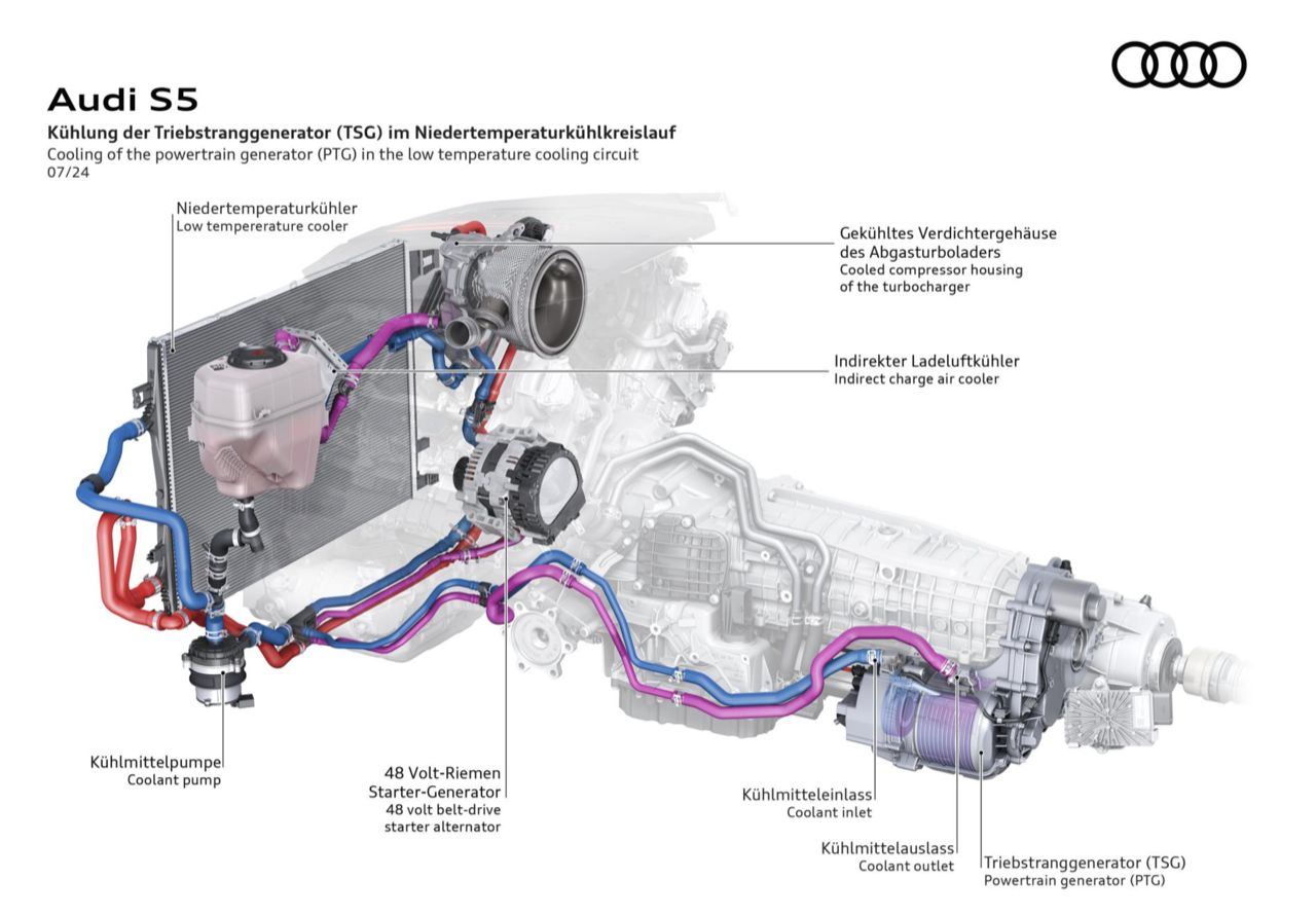 เครื่องยนต์เบนซิน: ระบายความร้อนด้วยระบบระบายความร้อนด้วยของเหลวแบบดั้งเดิม คล้ายกับรถยนต์ที่ไม่ใช่ไฮบริด
