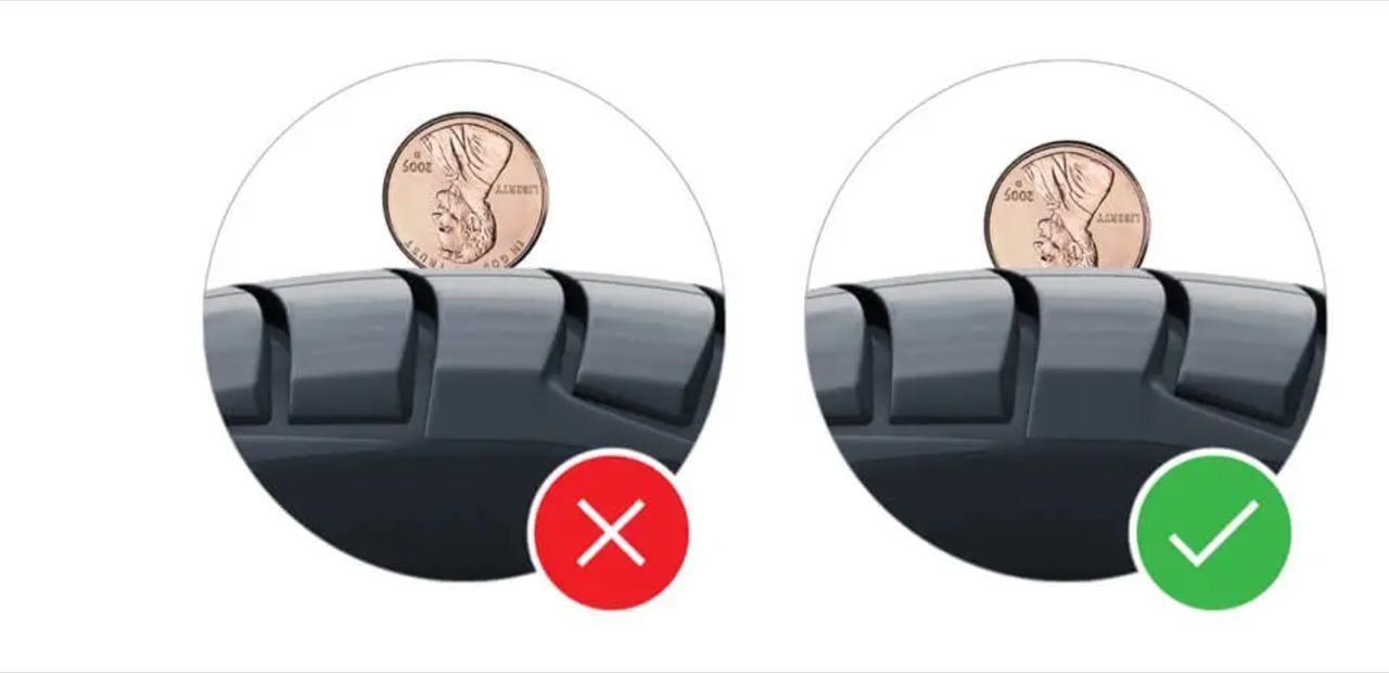 ดอกยางจะเกิดการสึกหรอไปตามระยะเวลาการใช้งาน ซึ่งไม่ควรปล่อยให้ความลึกร่องดอกยางมีขนาดต่ำกว่า 1.6 มม. การเช็กความลึกร่องดอกยาง เป็นเรื่องที่ทำได้โดยง่าย ให้ใช้ที่วัดความลึกร่องดอกยางซึ่งจะให้ค่าที่แม่นยำ หรือใช้เหรียญบาทในการวัด หากเหรียญกินลึกลงไปนิดเดียว ไม่ถึงครึ่ง ควรเปลี่ยนยางชุดใหม่ทันทีไม่ควรลากใช้ยางเก่าที่ร่องดอกยางสึกหรอจนเกือบจะโล้น เพราะอันตรายมากหากเกิดฝนตก
