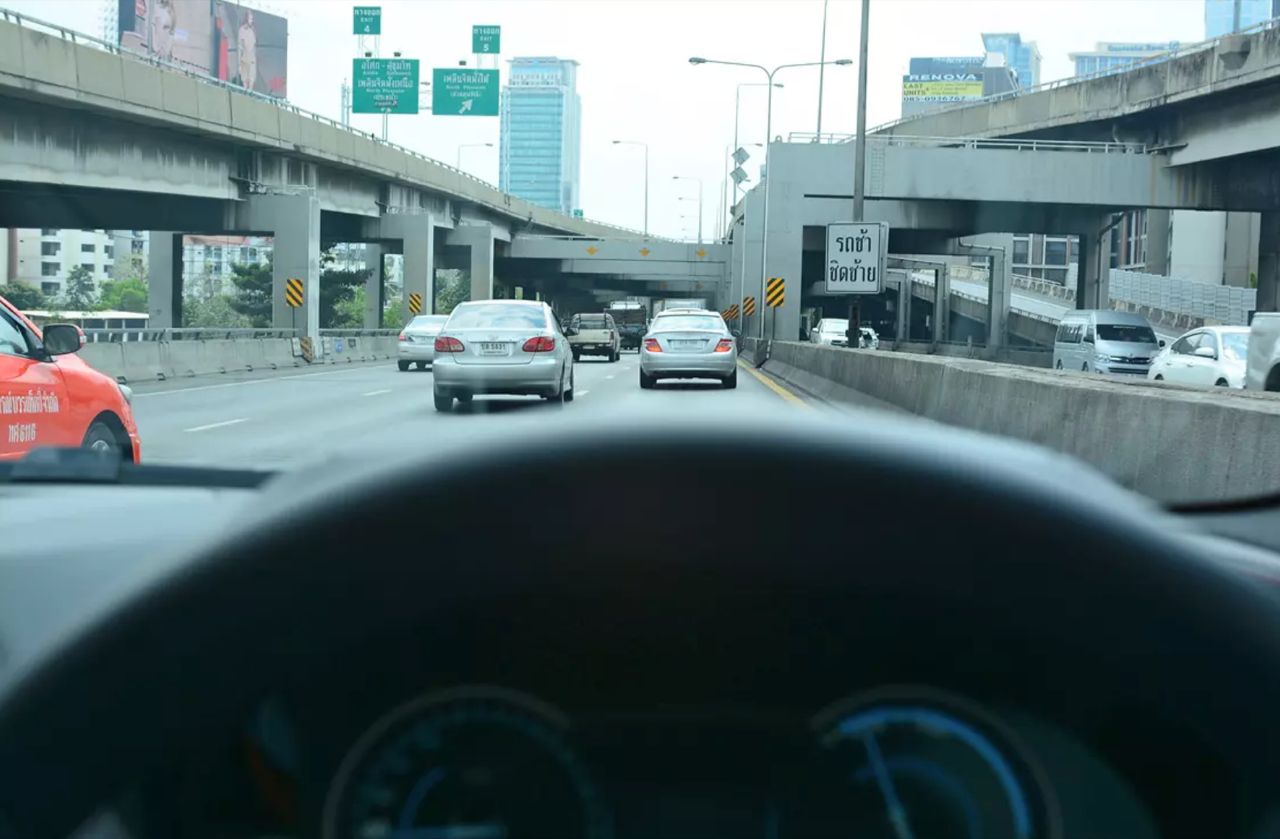 หลักง่ายๆ ให้คิดว่าหากรถคันข้างหน้าของคุณเบรกจนปัดหรือหมุนคว้างกลางถนน หรือข้างหน้าเกิดอุบัติเหตุชนกันระเนระนาดต่อหน้าต่อตากระจายเกลื่อนเต็มถนน คุณจะทำอย่างไร หลักคิดด้านความปลอดภัยในอันดับแรกก็คือการไม่ขับจี้ท้ายรถคันหน้า โดยทิ้งระยะห่างที่คิดว่าคุณจะใช้เบรกแบบฉุกเฉินได้ทันและปลอดภัยต่อการถูกชนท้ายเมื่อต้องเบรกแบบเต็มเหนี่ยว การขับบนไฮเวย์แตกต่างจากการขับในเมืองอย่างสิ้นเชิง