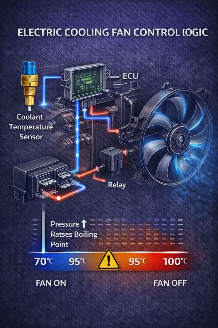 สวิตช์ควบคุมการเปิดปิดของวาล์วน้ำในระบบระบายน้ำร้อน ไม่ทำงาน หรือเทอร์โมสตัทเสีย ทำให้เครื่องยนต์ร้อนจัดอย่างรวดเร็ว วาล์วน้ำไม่ทำงาน ระบบน้ำหล่อเย็นไม่หมุนวนเพื่อลดอุณหภูมิการทำงานของเครื่องยนต์ ทำให้อุณหภูมิเครื่องยนต์สูงขึ้นอย่างรวดเร็วจนโอเวอร์ฮีต