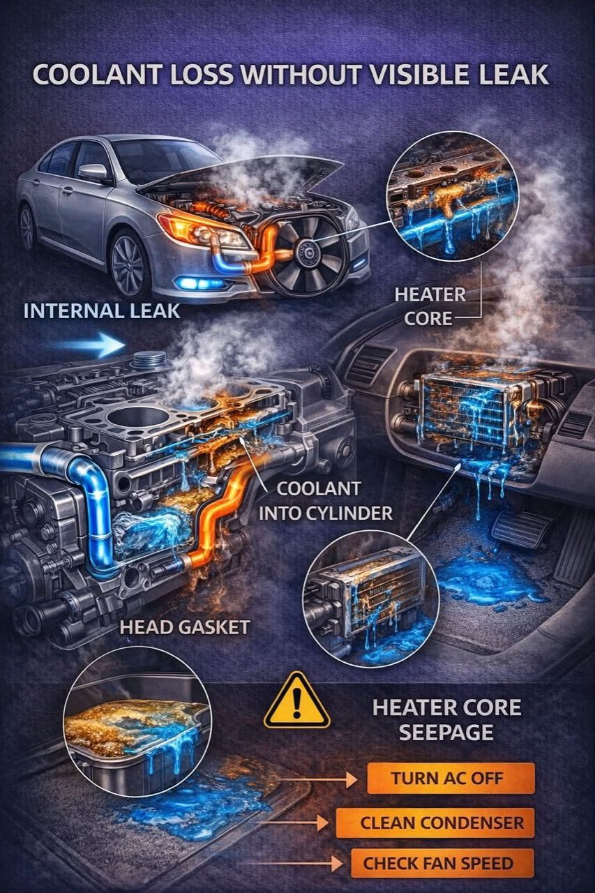 ตรวจสอบการรั่วซึม: สังเกตตามท่อยางและหม้อน้ำว่ามีรอยแตกหรือรั่วหรือไม่ หากน้ำยังหายหรือเครื่องยังร้อนจัด ให้เรียกช่างผู้เชี่ยวชาญ