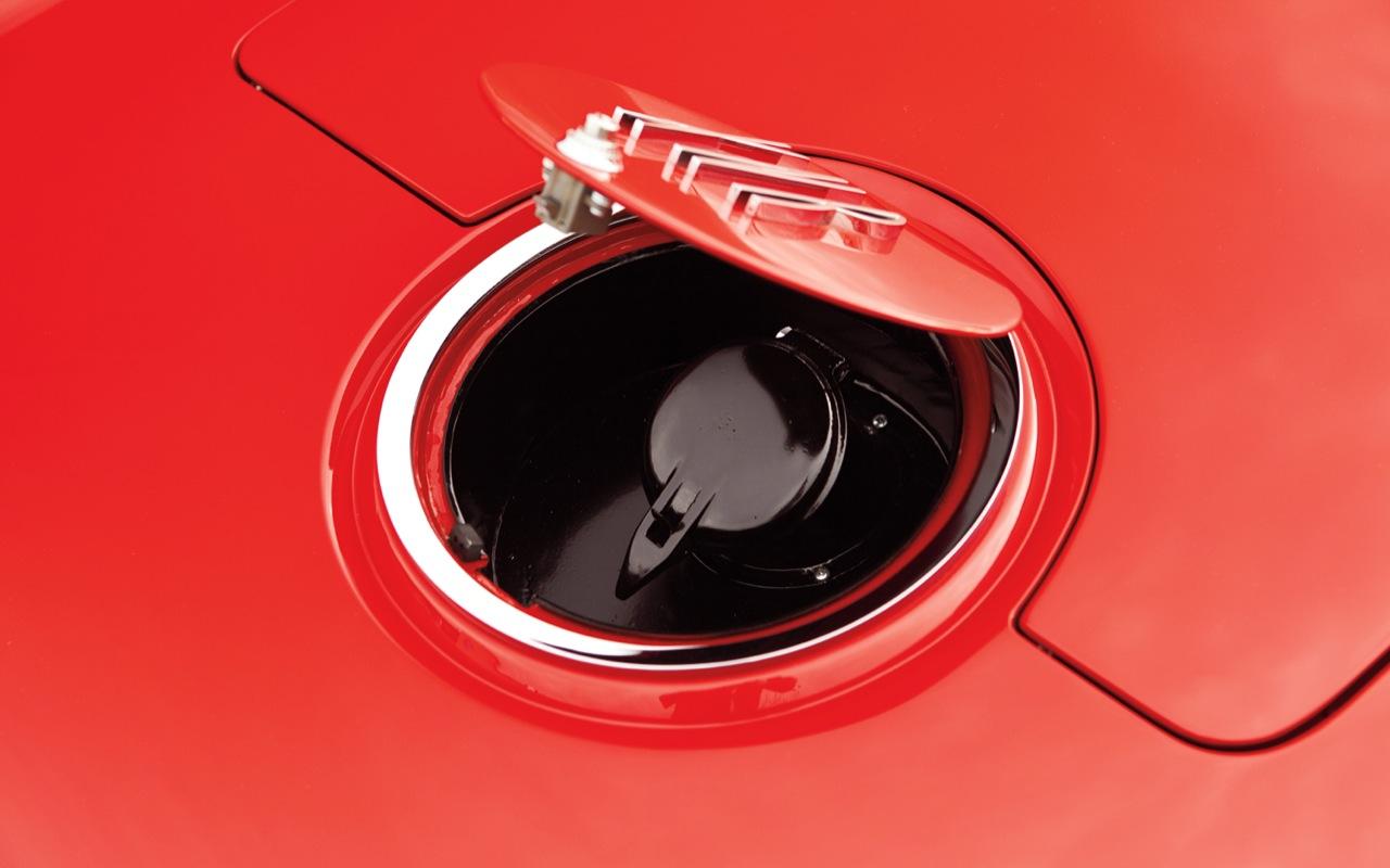 กระเบนธงสุดคลาสสิกคันนี้มีฝาเปิดที่เติมเชื้อเพลิงอยู่กึ่งกลางใต้กระจกบังลมบานหลัง วิธีเปิดก็ไม่ได้ยากแต่ตราสัญลักษณ์รูปธงคู่ของมันซึ่งอยู่บนฝาถังเชื้อเพลิงทำออกมาเนียนเหมือนเป็นชิ้นเดียวกับตัวถังเล่นเอาเด็กปั๊มขำไม่ออก