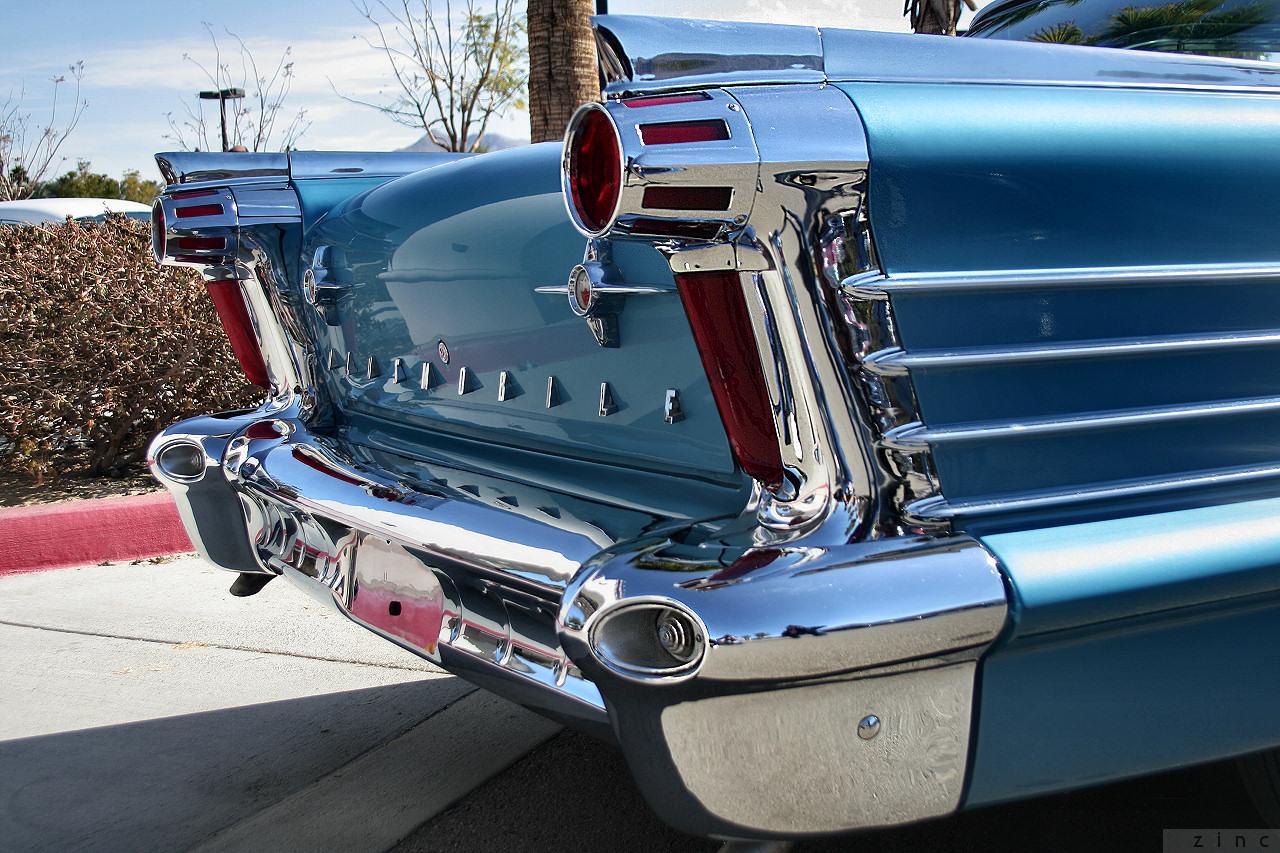 อเมริกันพันธุ์คลาสสิกในยุค 50' นี่คือ Oldsmobile ปิศาจช่วงยาวสุดสวยของเหล่าผู้ลากมากดีในอเมริกา นอกจากไฟท้ายอวกาศทรงจรวดที่สวยงามราวกับงานศิลปะชั้นเลิศแล้ว ถังเชื้อเพลิงก็ยังทำเนียนด้วยการซ่อนอยู่ในไฟท้ายด้านซ้าย ถูกชนท้ายทีนึงถึงกับซ่อมกันอาน นอกจากจะต้องเปลี่ยนไฟท้ายแล้วต้นทุนของฝาถังเชื้อเพลิงยังถูกรวมอยู่ในบิลค่าซ่อมอีกด้วย.