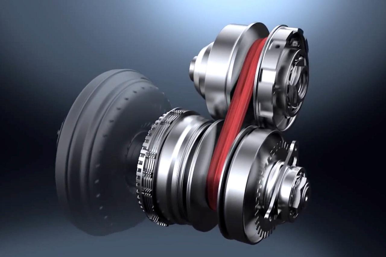 หลักการทำงานของชุดเกียร์ CVT ใช้พูเล่ย์สองชิ้น สายพานลำเลียงหรือ Push Belt ทำจากอัลลอย พูเล่ย์ตัวที่หนึ่งเชื่อมกับ Flywheel อีกด้านหนึ่งของพูเล่ย์เชื่อมกับแกนถ่ายทอดกำลังด้านนอก สายพานจะหมุนวนระหว่างอุปกรณ์ทั้งสองชิ้น ที่ตัว CVT พูเล่ย์จะรับหน้าที่ในการเปลี่ยนอัตราทด เมื่อพูเล่ย์หมุนเร็วขึ้นจะยิ่งหมุนไปใกล้กัน