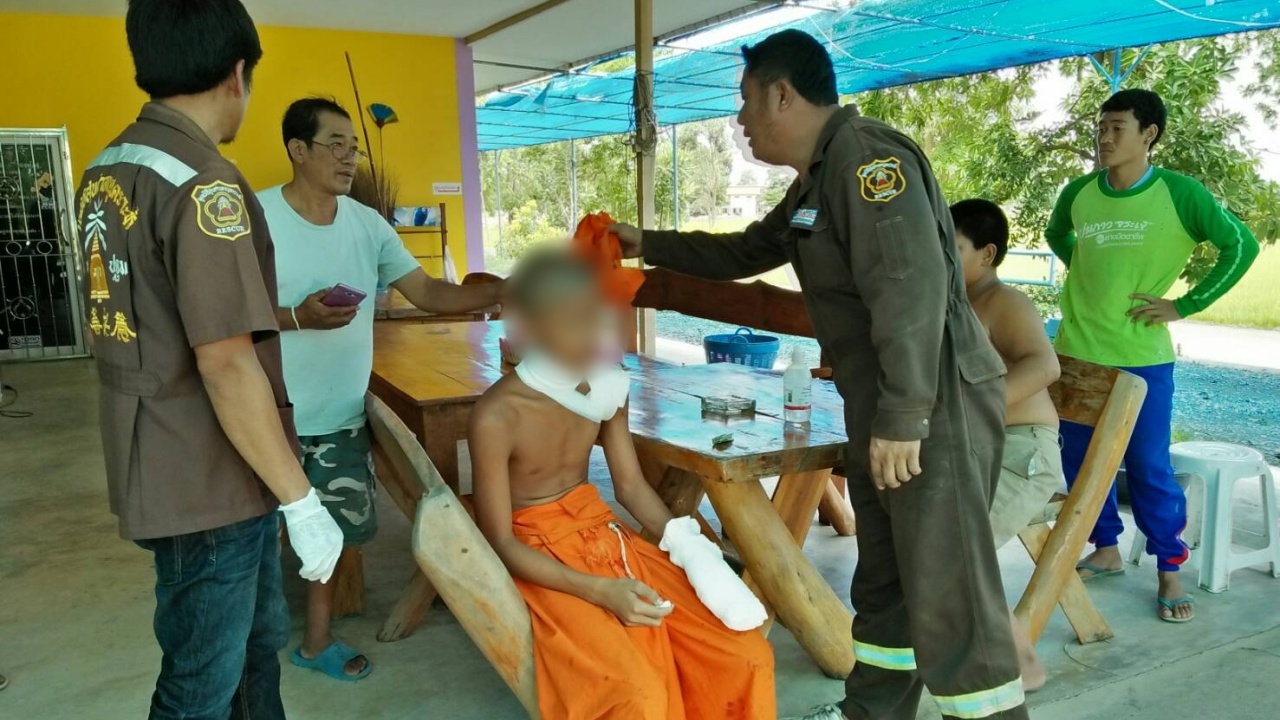 สามเณรนครปฐมวัย 13 ปี เจอประทัดยักษ์ไล่นกขณะออกมาเล่นกันเพื่อน จุดเล่นไปแล้ว 4 นัด แต่นัดสุดท้ายโยนไม่ทัน ระเบิดใส่มือ ปลายนิ้วกระดูกแตกบาดเจ็บ