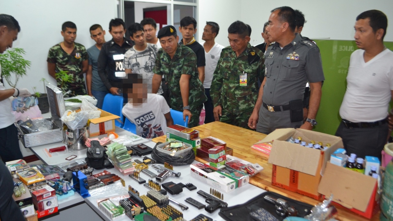 สืบเนื่องจากเมื่อช่วงเย็นวันที่ 12 ก.ค.ที่ผ่านมา พ.ต.ท.ธนวัฒน์ นำกำลังสายตรวจเข้าตรวจค้นบ้านหลังดังกล่าว หลังสืบทราบว่า นายอัสม์เดช มีพฤติกรรมค้ายาเสพติด โดยก่อนนี้เจ้าหน้าที่จับกุมตัวผู้ต้องหาได้ก่อนแล้ว 1 คน และสืบสวนขยายผลต่อมา ซึ่งจากการตรวจค้นภายในห้องพักของ นายอัสม์เดช พบสิ่งผิดกฎหมายหลายรายการ โดยเฉพาะอาวุธปืนพกสั้นหลายขนาดจำนวน 6 กระบอก และกระสุนปืนขนาดต่างๆ อีก 365 นัด ยาไอซ์หนักกว่า 150 กรัม พืชกะท่อม 3 กก. และกัญชาอีกจำนวนหนึ่ง ยาแก้ไออีกกว่า 40 ขวด บุหรี่ต่างประเทศหนีภาษีอีกจำนวนมาก และเงินสด 60,100 บาท เจ้าหน้าที่จึงตรวจยึดทั้งหมด พร้อมคุมตัว แต่ขณะเจ้าหน้าที่เข้าตรวจค้น นางเยาวดี ผู้เป็นแม่ พยายามขัดขวาง จึงคุมตัวมาดำเนินคดีด้วย