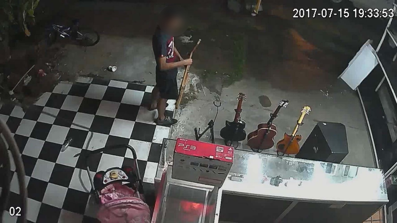 นายสิทธิพงษ์ ส่งศรี เจ้าของร้าน เปิดเผยกับผู้สื่อข่าวว่า เหตุการณ์ดังกล่าวเกิดขึ้นเมื่อวันที่ 15 ก.ค.2560 เวลาประมาณ 19.30 น. ขณะนั้นมีลูกค้าเข้าร้านหลายคน ซึ่งจังหวะที่คนร้ายขโมยเอาเบสที่ตั้งอยู่หน้าร้านไป ไม่มีคนอยู่หน้าร้าน และเพราะกำลังให้บริการลูกค้า พอเดินออกมาด้านนอกพบว่า เครื่องเล่นเบส หายไป 1 ตัว จึงได้เปิดกล้องวงจรปิดดู ก็พบคนร้ายเป็นชายดังกล่าว พร้อมกันนี้ยังได้ไล่ดูกล้องวงจรปิด พบว่า คนร้ายขับรถคันนี้ออกมาจากปั๊มน้ำมันที่อยู่ฝั่งตรงข้าม จึงได้เข้าไปขอดูภาพจากกล้องวงจรปิด ก็พบรถนิสสัน นาวาร่า ที่คนร้ายใช้ก่อเหตุ เข้ามากลับรถภายในปั๊ม ก่อนจะจอดรถไว้ฝั่งตรงข้ามร้าน และวิ่งข้ามถนนมาซุ่มในต้นไม้หน้าร้าน แล้วอาศัยจังหวะที่ลูกค้าเข้าไปดูสินค้าในร้าน จึงลงมือหยิบเอาเบสวิ่งไปขึ้นรถแล้วรีบขับหนีไป