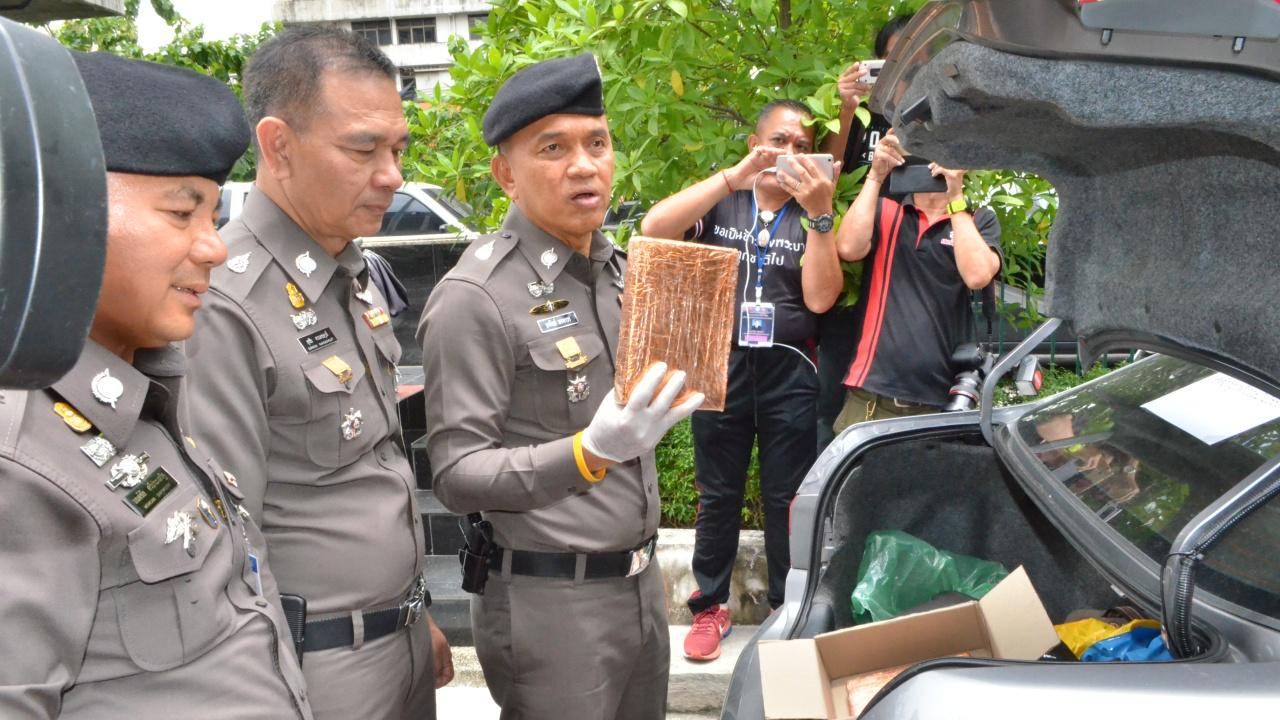 พล.ต.ท.ศานิตย์ เปิดเผยว่าการจับกุมครั้งนี้ สืบเนื่องจากเมื่อช่วงเช้าของวันที่ 17 ก.ค. เจ้าหน้าที่บริษัท 30 โพลส์ แอนด์ เปย์ เซอร์วิส ซึ่งเป็นบริษัทรับนำฝากพัสดุไปยังบริษัทไปรษณีย์ไทย ได้รับแจ้งจากเจ้าหน้าที่ไปรษณีย์ไทย สาขาถนนเพชรบุรีตัดใหม่ว่า มีชายคนหนึ่งนำพัสดุ จำนวน 13 กล่อง มาฝากส่งในชื่อ น.ส.รุ้งเพชร อยู่เจริญ ซึ่งจากการตรวจสอบพบว่าเป็นชื่อและนามสกุลปลอม และมีลักษณะผิดปกติจึงได้ทำการแกะกล่องพัสดุกล่องหนึ่งเพื่อตรวจสอบ กระทั่งพบว่าเป็นกัญชาอัดแท่ง จึงได้แจ้งเจ้าหน้าที่ตำรวจเข้าไปตรวจสอบ
