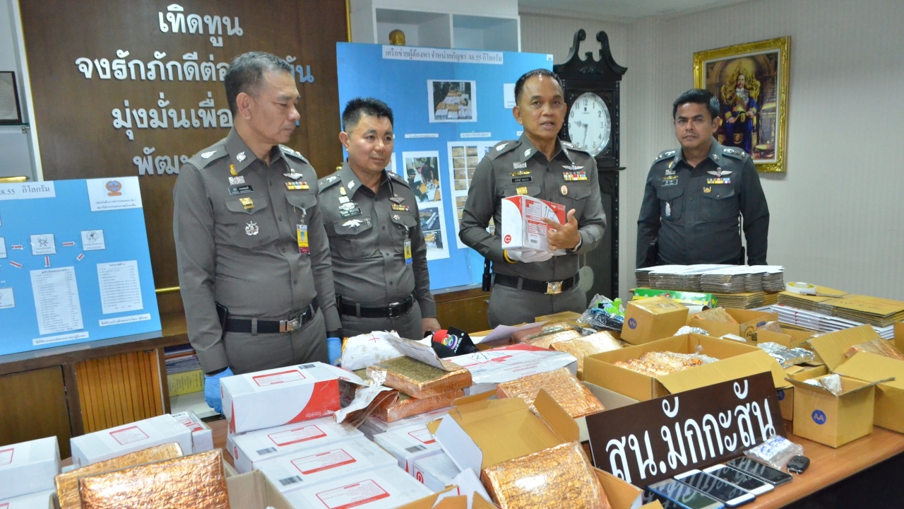 ผบช.น. และชุดสืบสวน สน.มักกะสัน ร่วมแถลงจับแก๊งค้ากัญชาผ่านไปรษณีย์รายใหญ่ รวบ 4 ผู้ต้องหา พร้อมของกลาง รวมน้ำหนักกว่า 48 กิโลกรัม ขณะเตรียมส่งของให้ลูกค้า พร้อมกำชับบริษัทเอกชนรับนำฝากพัสดุตรวจสอบเข้ม