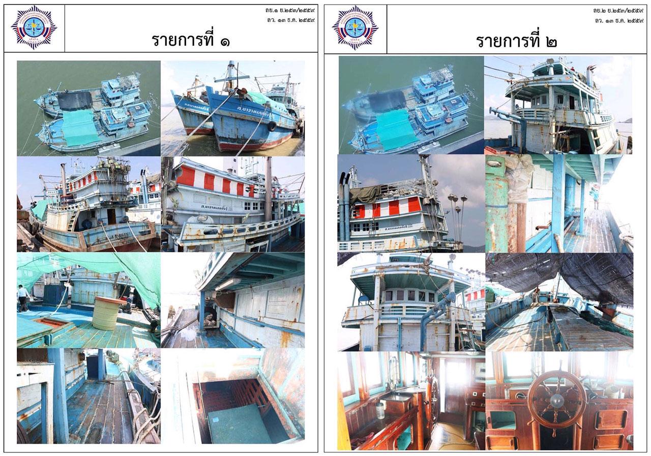 ทั้งนี้ น.ส.รงรอง เผยว่า วันนี้ สำนักงาน ปปง.นำ 1.เรือกลประมงทะเลลึก ชั้น 1 ชื่อ "ก.นาวามงคลชัย 8" ความจุ 158 ตันกรอส เครื่องยนต์ดีเซล ยี่ห้อคัมมินส์ กำลังเครื่องยนต์ 387.92 กิโลวัตต์ ก่อนประมูลจบที่ราคา 2,200,000 บาท และ 2.เรือกลประมงทะเลลึก ชั้น 1 ชื่อ "ก.นาวามงคลชัย 1" ความจุ 160 ตันกรอส เครื่องยนต์ดีเซล ยี่ห้อคัมมินส์ กำลังเครื่องยนต์ 383.30 กิโลวัตต์ ก่อนประมูลจบที่ราคา 2,700,000 บาท มูลค่ารวม 4,900,000 บาท