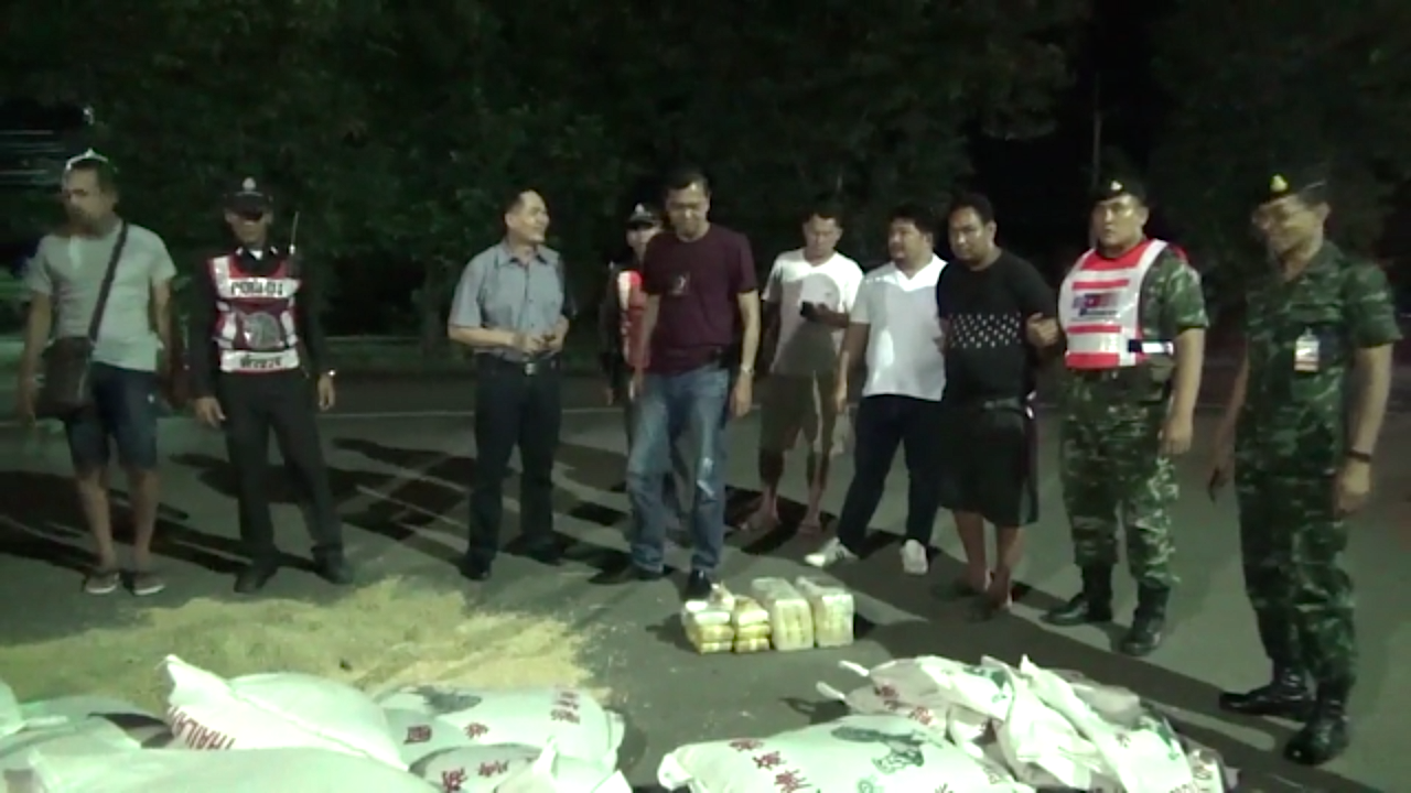 ตำรวจ-ทหารประจวบคีรีขันธ์ สนธิกำลังจับยาบ้าคาด่านสามร้อยยอด จำนวน 1.1 แสนเม็ด ผู้ต้องหาตบตาเจ้าหน้าที่เอายาบ้าใส่กระสอบอาหารสัตว์บรรทุกท้ายกระบะ...