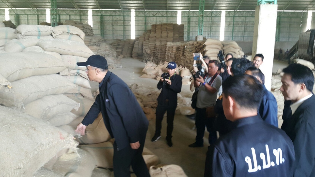 เมื่อเวลา 10.00 น. วันที่ 24 ก.ค.60 ที่สำนักงานป้องกันปราบปรามการทุจริตเขต 6 (ป.ป.ท.เขต 6) นายประยงค์ ปรียาจิตต์ เลขาธิการสำนักงานป้องกันและปราบปรามการทุจริตในภาครัฐ (ป.ป.ท.) ในฐานะเลขาธิการ ศอตช. พร้อม พ.ท.กรทิพย์ ดาโรจน์ รองเลขาธิการ ป.ป.ท. พ.ต.อ.กษิดิศ เพิ่มพูนวิวัฒน์ ผู้อำนวยการสำนักงานป้องกันและปราบปรามการทุจริตในภาครัฐ เขต 6 ลงพื้นที่ตรวจโกดังเก็บรักษาข้าวในคลังสินค้า จ.สุโขทัย ซึ่งเป็นข้าวในโครงการรับจำนำข้าวตั้งแต่ปี 2551-2557 พบว่ามีความเสียหายในการเก็บรักษา และเป็นข้าวเก่า นอกจากนี้ยังพบว่าข้าวมาจากจังหวัดพิษณุโลก ซึ่งไม่ใช่ข้าวของ จังหวัดสุโขทัย