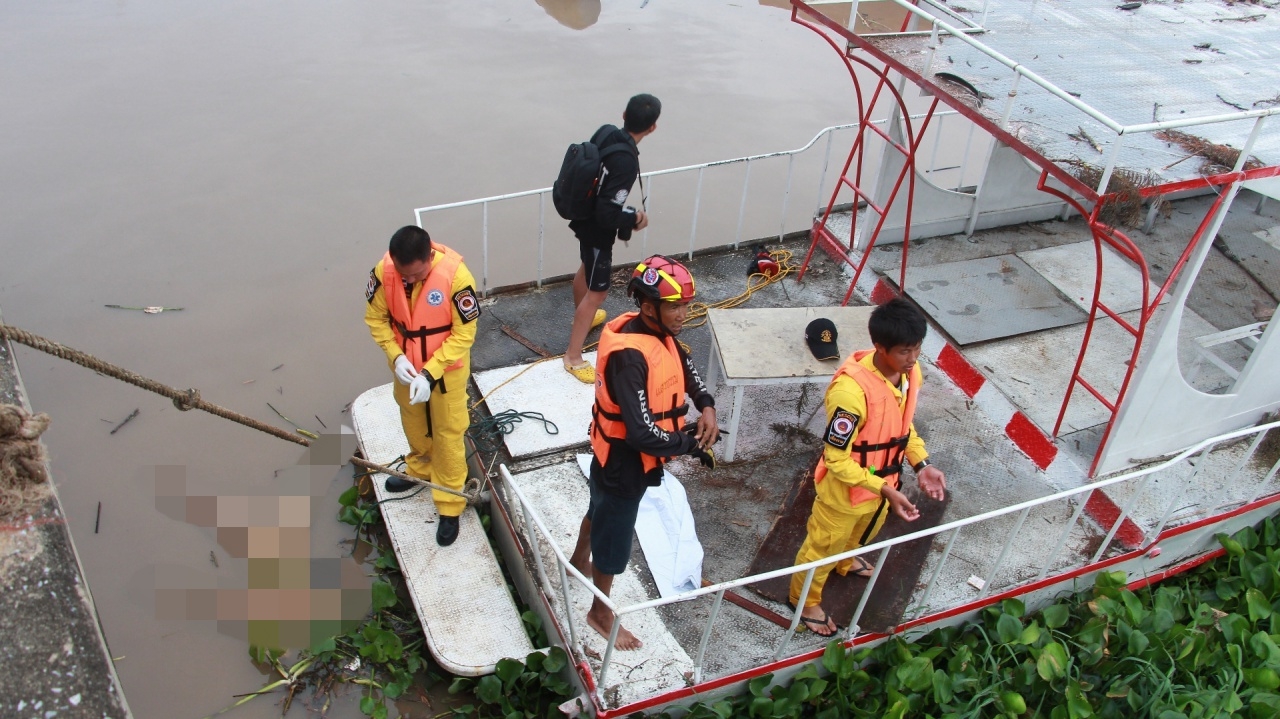 อบจ.เชียงราย นำกำลังเข้ากู้โป๊ะหลังโดนน้ำซัดลวดสลิงขาดลอยมาติดอยู่หน้าฝายเชียงราย ผงะ เจอศพผู้ชายติดอยู่ข้างใต้ ใช้เวลา 6 ชม.นำศพขึ้นมาได้ คาดตายมาแล้ว 4-5 วัน ในพื้นที่ยังไม่มีแจ้งคนหาย