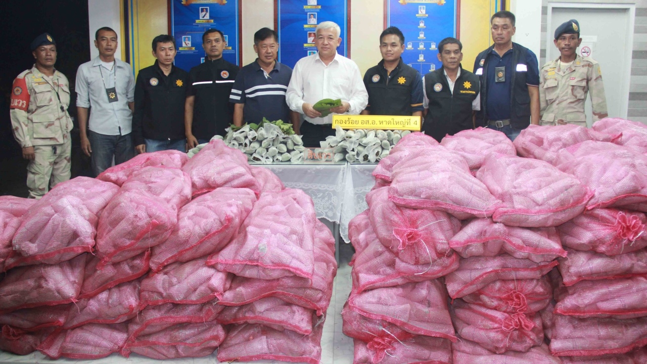 นอภ.หาดใหญ่ และ อส.สกัดจับคาราวานขนใบกระท่อมบนถนนสายปากบาง-ทุ่งปรือ เขต หมู่6 ต.พะตง เจอรถต้องสงสัย 2 คันค้นเจอใบกระท่อมใส่ในกระสอบ 90 กระสอบ หนักรวม 900 กก.พร้อมผู้ต้องหา 2 คน และรถต้องสงสัยเป็นรถคุ้มกันอีก 1 คัน...