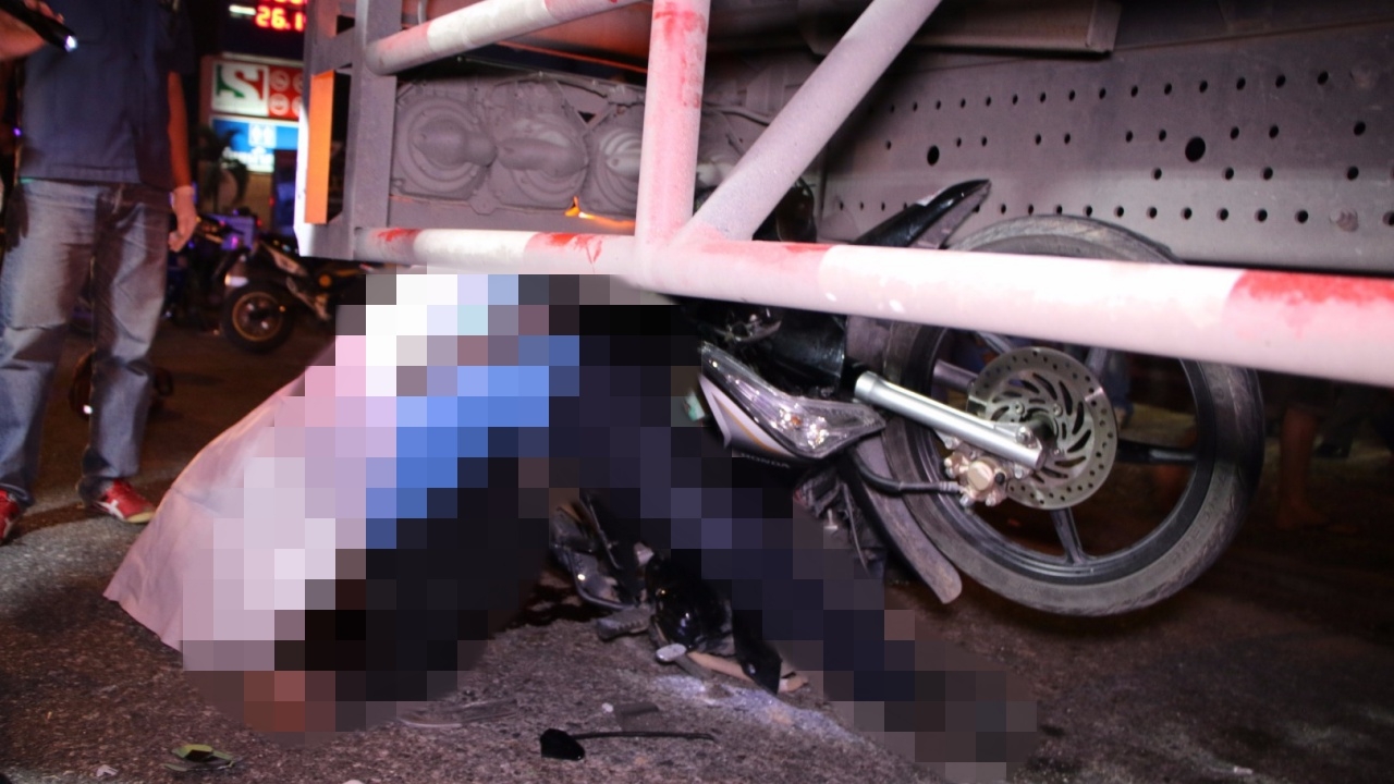 คนขับ 6 ล้อ จอดรถริมถนนหน้าปั๊มทานข้าวย่านบางปะกง ได้ยินเสียงรถชนรีบเดินมาดู พบจักรยานยนต์พุ่งเสียบท้าย คนขี่เสียชีวิตลักษณะหงายแต่ขายังคร่อมอยู่กับรถ