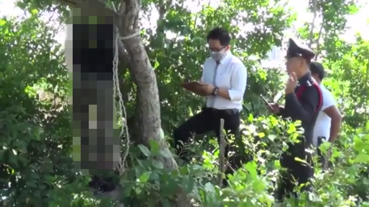 หนุ่มสกลนคร ผูกคอตายกับต้นไม้ใน อ.เมืองชล แฟนสาวเผย ก่อนหน้ายืมเงินเพื่อนไปเล่นพนันบอล ตร.คาด ติดหนี้โต๊ะบอลไม่มีเงินจ่าย