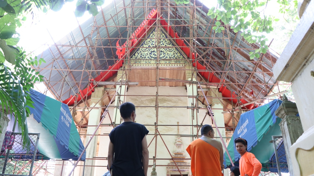 ชายชาวสุโขทัย ร่วมกับเพื่อนยกใบระกากว่า 100 กก. ขึ้นบนหลังคาโบสถ์วัดสูง 10 เมตร ใน อ.บ้านโป่ง จู่ๆ หน้ามืดร่วงใส่โครงเหล็กก่อนกระแทกพื้นซ้ำสลบคาที่ อาการสาหัส เร่งส่งรักษา