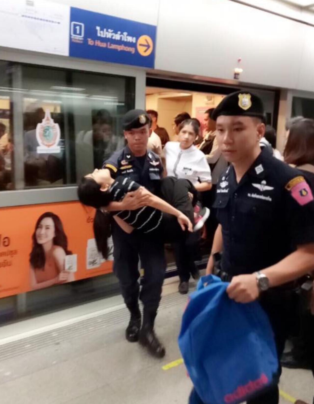 ปชช.ใช้บริการรถไฟฟ้าใต้ดิน ชั่วโมงเร่งด่วนถ่ายภาพ 2 นายตำรวจ อรินทราช รีบเข้าช่วยหญิงสาวเป็นลมหมดสติในขบวน สถานีสุขุมวิท โซเชียลแห่ชื่นชม เจ้าตัวเผย "เป็นหน้าที่ตำรวจต้องดูแลประชาชน"