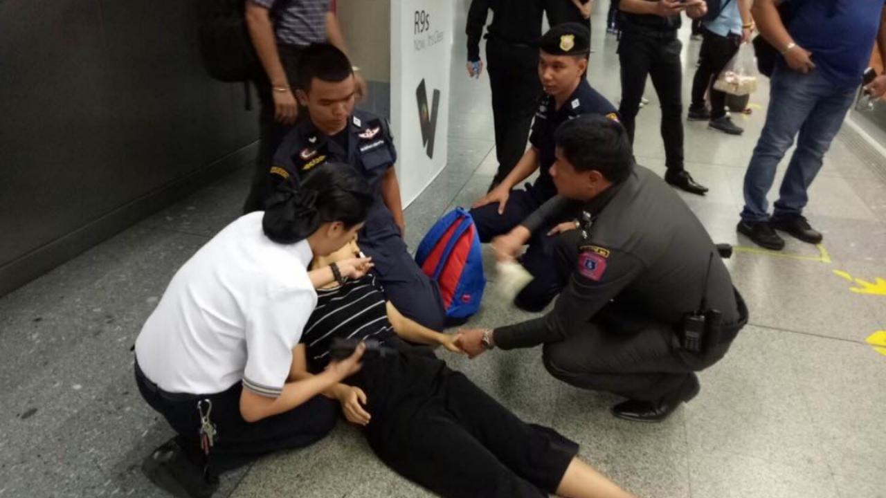 "ซึ่งระหว่างตรวจตราความเรียบร้อยภายในขบวนรถไฟฟ้า กระทั่งรถไฟฟ้าได้จอดเทียบชานชาลาสถานีรถไฟฟ้าใต้ดินสถานีสุขุมวิท ก็ได้ยินเสียงร้องขอความช่วยเหลือ ไปตรวจสอบก็พบว่ามีผู้โดยสารรายหนึ่งเป็นหญิงสาว ได้เป็นลมหมดสติไป จึงได้ทำการอุ้มผู้โดยสารออกมาบริเวณชั้นสองที่ซื้อตั๋วโดยสาร เพื่อปฐมพยาบาลเบื้องต้น เนื่องจากว่าในขบวนมีผู้โดยสารจำนวนมาก เกรงว่าอากาศถ่ายเทไม่สะดวก พร้อมกันนี้ได้ประสานญาติก็ทราบว่าหญิงคนดังกล่าวมีโรคประจำตัวเป็นโรคความดันต่ำ จึงได้ประสานรถพยาบาลเพื่อนำผู้โดยสารคนดังกล่าวส่งโรงพยาบาล"