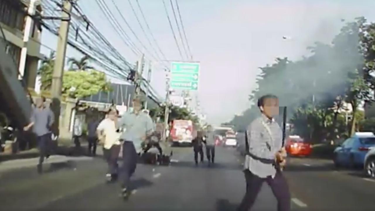 ตีกันแต่เช้า เด็กช่าง 2 กลุ่ม ขี่ จยย. ไล่ฟัน ปาบึม ก่อนไประบายอารมณ์ด้วยการทุบรถ จยย. ของอริ ที่ถูกจอดทิ้งไว้ ตำรวจเผยมีผู้บาดเจ็บเล็กน้อย ก่อนสลายตัวหลบหนี