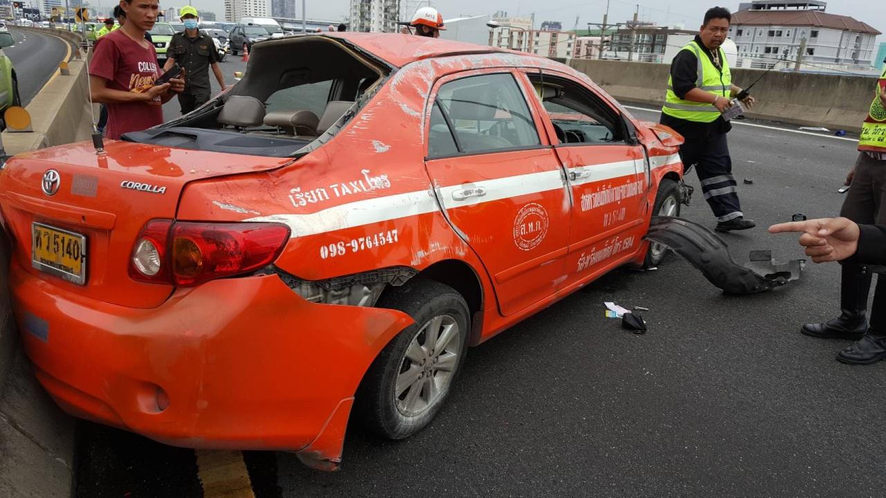 อย่างไรก็ตามจากการตรวจสอบที่เกิดเหตุ พบรถแท็กซี่ สีส้ม หมายเลขทะเบียน ทว 5140 กรุงเทพมหานคร จอดอยู่เลนขวาสุด สภาพกระจกแตก ด้านหน้าและด้านท้ายพังยุบ พบผู้เสียชีวิตกระเด็นออกมานอกรถ สภาพกะโหลกศีรษะแตก มันสมองกระจายเต็มถนน