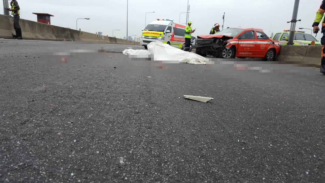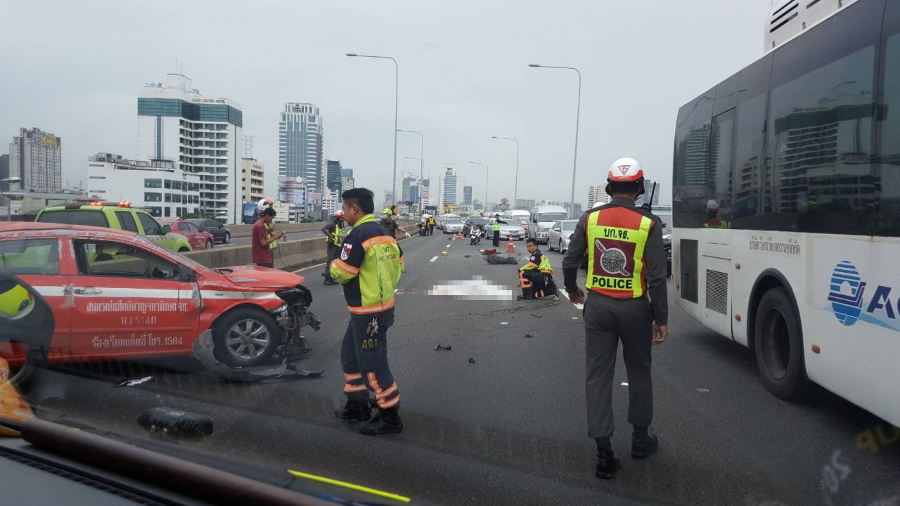 เกิดอุบัติเหตุรถแท็กซี่เสียหลักพลิกคว่ำบนโทลล์เวย์ บริเวณเหนือแยกสุทธิสาร ผู้โดยสารไม่คาดเข็มขัดนิรภัยกระเด็นออกมานอกรถเสียชีวิต 1 ราย ตำรวจปิดจราจรชั่วคราว ส่งผลรถติดยาวสะสม