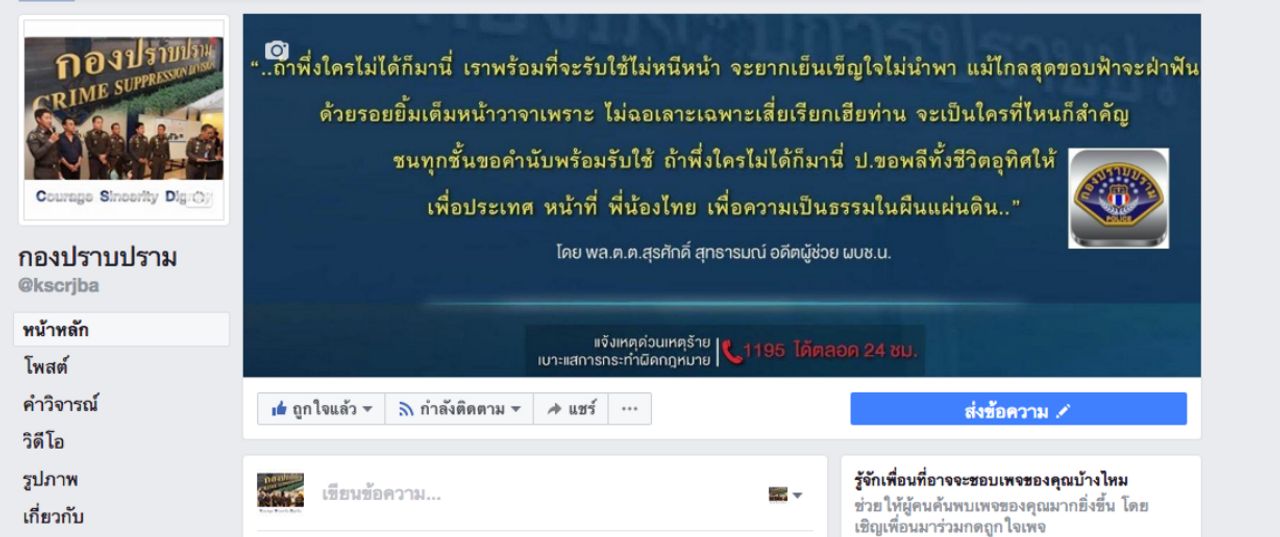 เมื่อวันที่ 9 กันยายน 2560 ผู้สื่อข่าวรายงานว่า เพจเฟชบุ๊กใช้ชื่อว่า “กองปราบปราม” ที่เพิ่งเปิดตัวได้เพียงไม่ถึง 2 อาทิตย์ เผยแพร่คลิปวีดีโอ ฟื้นคดีสำคัญตัดต่อถ่ายทำใหม่โดยทีมตำรวจกองปราบปราม นำข้อมูลเก่าที่เคยไปบุกจับคดีสำคัญน่าสนใจและอยู่ในกระแสสังคม นำมาเรียบเรียงตัดต่อใหม่ มุ่งหวังให้เป็นกรณีศึกษา เมื่อประชาชนดูแล้วอยากจะให้ระมัดระวังตัว เหตุการณ์เหล่านี้จะได้ไม่เกิดซ้ำกับใครอีก