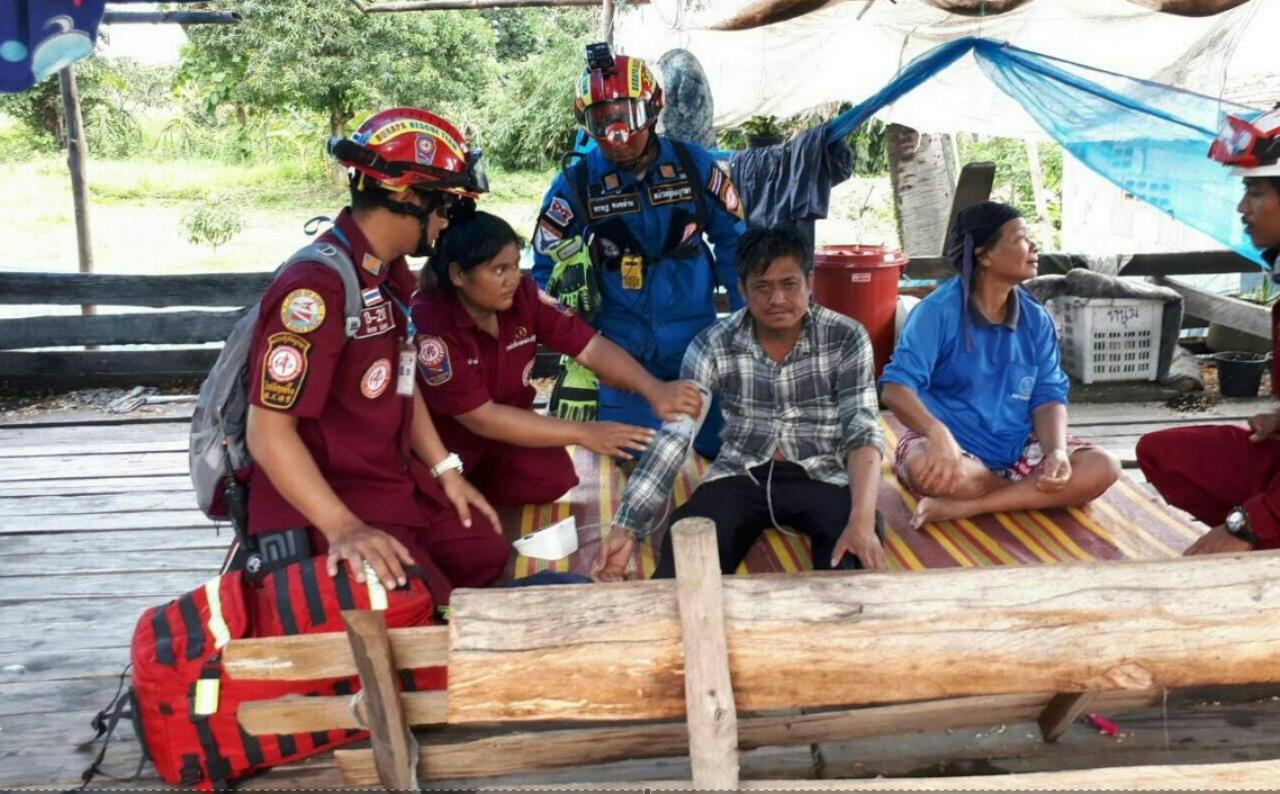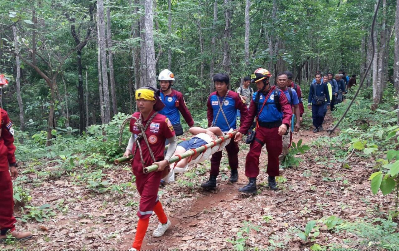กระทั่งรุ่งเช้าพบทั้งคู่มีเนื้อตัวเปียกปอน สภาพอิดโรยจากความเหนื่อยล้า นอนหมดแรงอยู่บนก้อนหินขนาดใหญ่ เจ้าหน้าที่ต้องช่วยกันปฐมพยาบาลก่อนนำส่ง รพ.ใกล้เคียงในเวลาต่อมา...