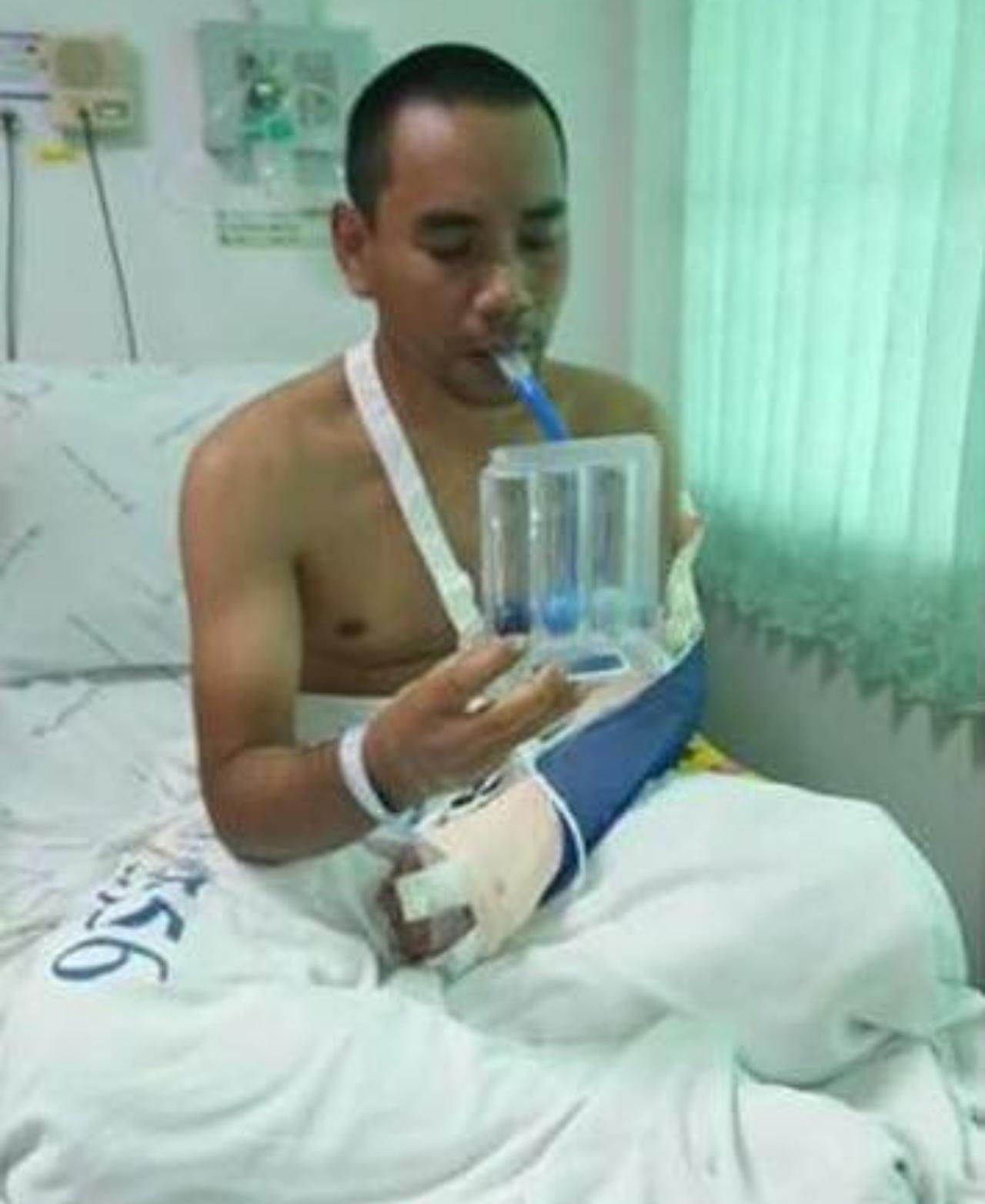 ส่วนอาการล่าสุดของ จ่าสิบตำรวจ เอกชัย สมอคำ หนึ่งในชุดเก็บกู้ระเบิด แพทย์ให้ทำการบริหารปอดจากการผ่าตัด อาการดีขึ้นตามลำดับ