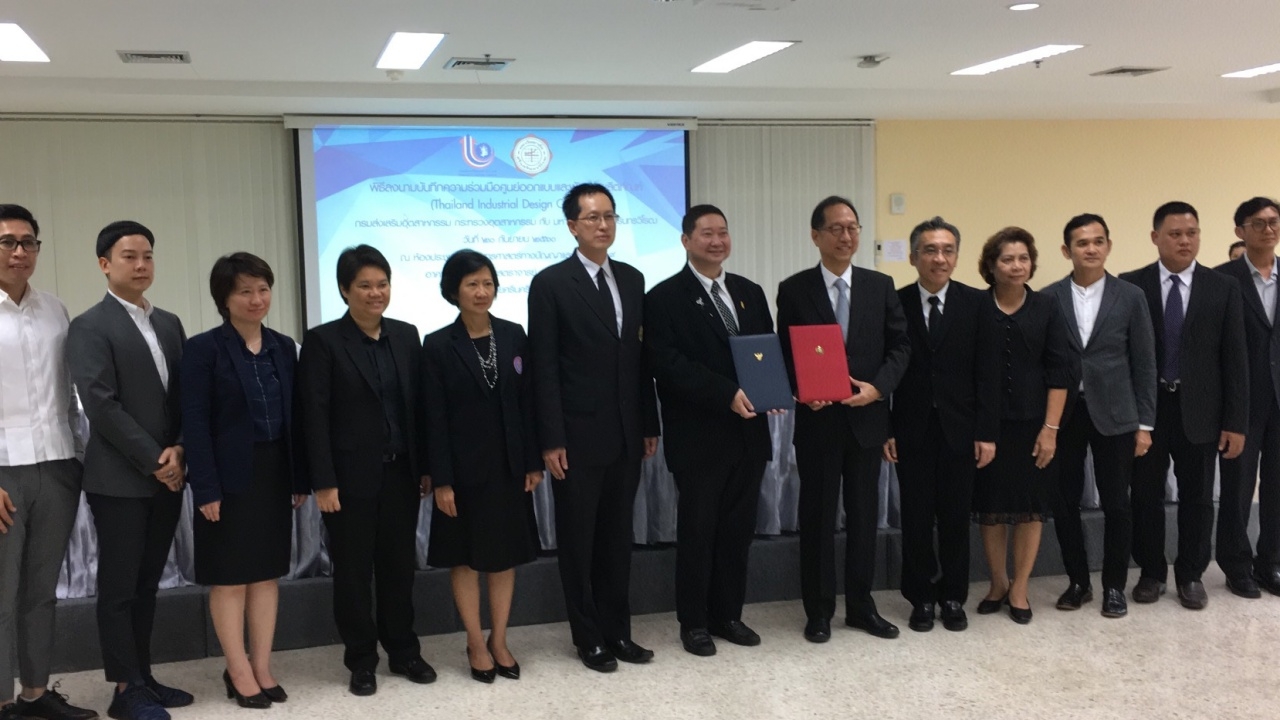 กรมส่งเสริมอุตสาหกรรม ลงนามบันทึกความร่วมมือศูนย์ออกแบบและพัฒนาผลิตภัณฑ์ กับ มศว โดยมี ผศ.ดร.ปฐมทัศน์ จิระเดชะ, ผศ.ดร.ประมา ศาสตระรุจิ และ ผอ.วันเพ็ญ รัตนกังวาล เข้าร่วมงาน