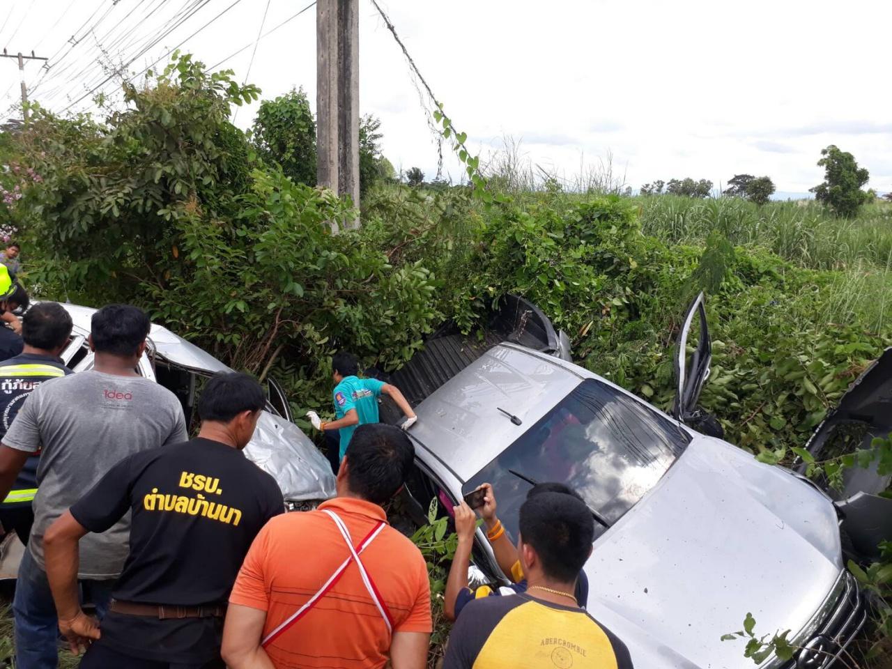 ที่เกิดเหตุ พบรถยนต์เก๋งโตโยต้า วีออส สีบรอนซ์เงิน ทะเบียน กท-2151 สระบุรี กระเด็นตกลงไปที่ไหล่ทางด้านข้าง สภาพด้านหน้าตัวรถพังยับ เจ้าหน้าที่กู้ภัยนำผู้เสียชีวิตทั้ง 2 รายออกมา ทราบชื่อ นางลมิตา เอกผล อายุ 51 ปี อยู่บ้านเลขที่ 36 ม.3 ต.ผ่านศึก อ.อรัญประเทศ จ.สระแก้ว ซึ่งเป็นผู้ขับขี่ ส่วนคนนั่งเบาะด้านหน้าอีกคน ทราบชื่อว่านายสมคิด เอกผล อายุ 65 ปี คาดว่าจะเป็นสามีภรรยากัน ถัดไปเล็กน้อย พบรถยนต์กระบะ โตโยต้าสีบรอนซ์เงิน ทะเบียน 2ฒฆ-1788 กทม.จอดพิงตะแคงข้าง กระบะด้านหลังบรรทุกถังใส่อาหาร มีทั้งไก่สดและปลา กระจัดกระจายเรี่ยราด คนเจ็บอีก 2 ราย ถูกนำตัวส่งยังโรงพยาบาลสมเด็จพระยุพราชสระแก้ว ไปก่อนหน้านี้
