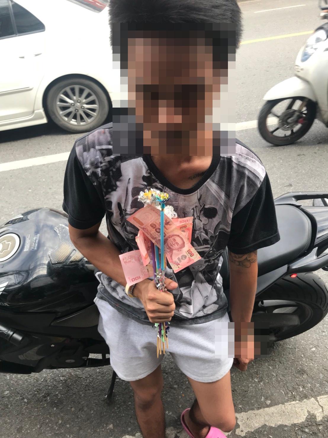 เมื่อเวลา 09.00 น. วันที่ 17 ต.ค.60 ร.ต.ต.การันต์ มาลัยวงศ์ รอง สวป.สน.บางขุนเทียน และ นายกวีวัธญ์ จิรทีปสิริฉัตร เจ้าหน้าที่ศูนย์ป้องกันและปราบปรามยาเสพติด สำนักงานเขตจอมทอง ร่วมกันจับกุม นายกาญจน์ ผลุงกระโทก อายุ 22 ปี พร้อมธนบัตรใบละ 100 บาท จำนวน 7 ใบ โดยจับกุมตัวได้ทันควัน ขณะทำการวิ่งราวเงินจำนวนดังกล่าวจากพุ่มกฐินของวัดข่วงมื่น อ.สันป่าตอง จ.เชียงใหม่ ซึ่งวางอยู่หน้าร้านขายก๋วยเตี๋ยวเป็ดไม่มีชื่อ บริเวณปากซอยวุฒากาศ 40 แขวงบางค้อ เขตจอมทอง กทม.