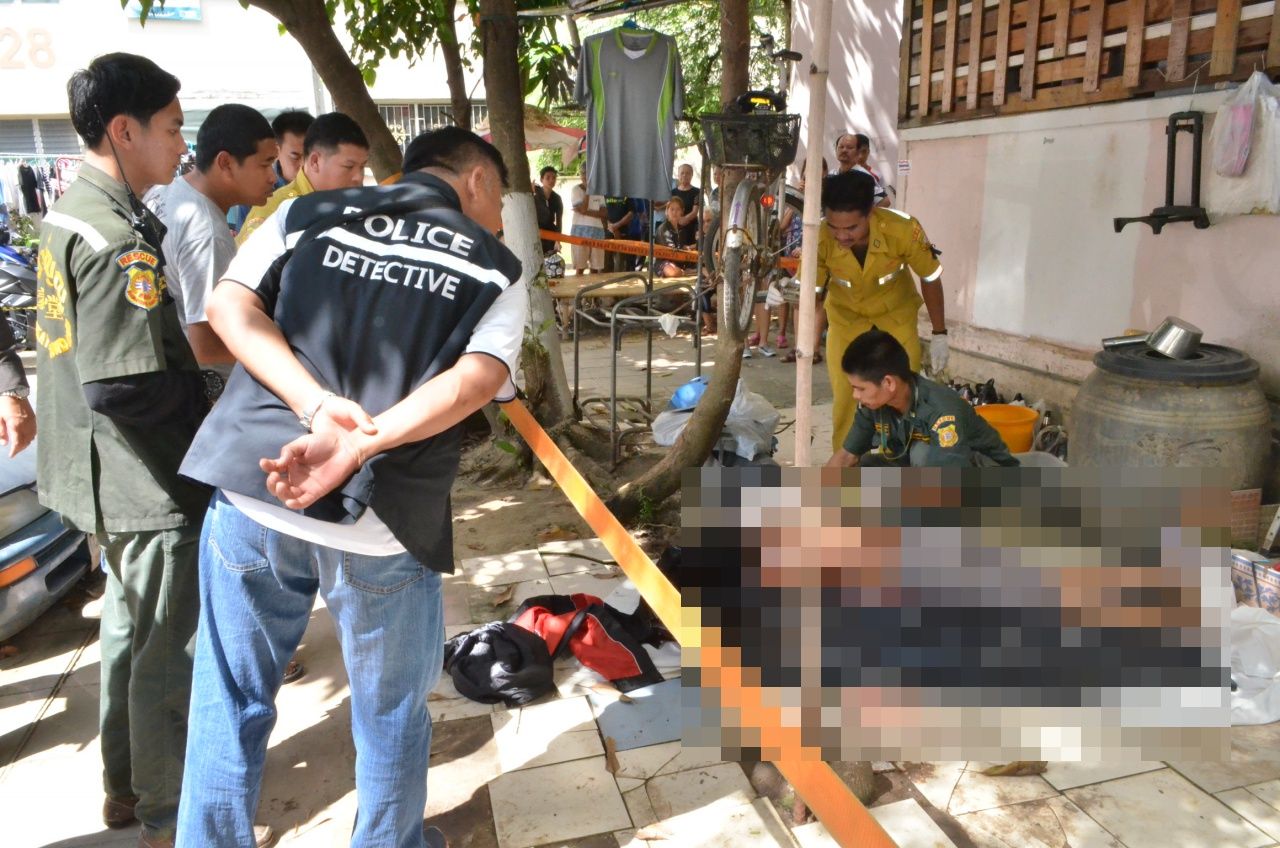 ที่เกิดเหตุอยู่บนบาทวิถีข้างอาคารดังกล่าวพบศพนายวันนะ ภูติวัฒนชัย อายุ 57 ปี ชาวบ้านย่านคู้บอน แขวงท่าแร้ง เขตบางเขน กทม. สภาพศพนอนหงาย ไม่สวมเสื้อ ส่วมกางเกงขาสั้นสีเทา ใกล้กันพบหมอนรองกระสุนปืนลูกซองเบอร์ 12 กระจายตามพื้นจำนวน 5 แห่ง บริเวณกำแพงอาคารพบรูกระสุนปืน 1 แห่ง ตรวจสอบตามร่างกายพบบาดแผลถูกยิงด้วยอาวุธปืนลูกซองเบอร์ 12 ยิงเข้าที่บริเวณหลังจำนวน 12 แห่ง นอนเสียชีวิตจมกองเลือด เจ้าหน้าที่ต้องใช้เส้นโปลิศลายกั้นที่เกิดเหตุเพื่อกั้นผู้ที่ไม่เกี่ยวข้อง