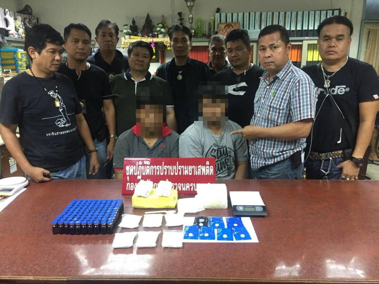 เมื่อเวลา 15.00 น. วันที่ 20 ต.ค.60 ที่สน.บางเขน พ.ต.อ.ระพีพงษ์ สุขไพบูลย์ รอง ผบก.น.2 พ.ต.อ.อำนาจ อินทรศวร ผกก.สน.บางเขน พ.ต.ท.เสน่ห์ มณีฉาย สว.สส.สน.บางเขน/หัวหน้าชุดปฏิบัติการปราบปรามยาเสพติด บก.น.2 ร.ต.อ.นิคม ประดับวงษ์ รอง สว.สส.สน.บางซื่อ ร.ต.ท.บุญเลิศ เครือม่วง รอง สว.สส.สน.บางเขน ร.ต.ท.ประพันธ์ พูนรัตน์ รอง สว.สส.สน.เตาปูน เจ้าหน้าที่ชุดปฏิบัติการปราบปรามยาเสพติด บก.น.2 ร่วมกันแถลงผลการจับกุมนายจักรกฤช หรือจุ๊ บำรุง อายุ 21 ปี และนายเอ็ม (นามสมมุติ) อายุ 18 ปี พร้อมของกลางยาไอซ์ 1,609 กรัม ยาเค 100 ขวด ยาบ้า 15,390 เม็ด และโทรศัพท์มือถือ 2 เครื่อง โดยสามารถจับกุมได้ภายในบ้านพัก ชุมชนสนามกีฬารามอินทรา ซอยรามอินทรา 5 แขวงท่าแร้ง เขตบางเขน กทม.