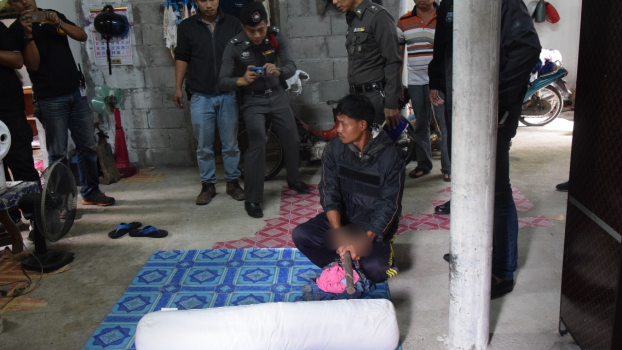 ต่อมา ในช่วงเวลาประมาณ 01.00 น. ของวันที่ 4 พ.ย. 60 นายฮาซัน เกิดอารมณ์ทางเพศ จึงได้ชวนนางบิสมีหลับนอน แต่นางบิสมีขัดขืน นายฮาซัน จึงได้เดินไปที่ห้องครัวหยิบหัวแก๊สมาทุบที่ศีรษะนางบิสมี เมื่อถูกทุบนางบิสมีร้องเสียงดัง นายฮาซันจึงได้ลุกเดินไปหยิบมีดที่ตั้งอยู่บนโต๊ะทีวี นำมาแทงคอและลำตัวนางบิสมีจนเสียชีวิต ในระหว่างนั้น ด.ญ.นัสริน ซึ่งนอนหลับข้างนางบิสมี ตื่นพบเห็นเหตุที่เกิดขึ้น นายฮาซัน จึงตัดสินใจใช้มีดเล่มดังกล่าวแทง ด.ญ.นัสริน จนเสียชีวิต จากนั้นนายฮาซันจึงได้แยกศพ 2 แม่ลูกขึ้นรถจักรยานยนต์พ่วงข้าง