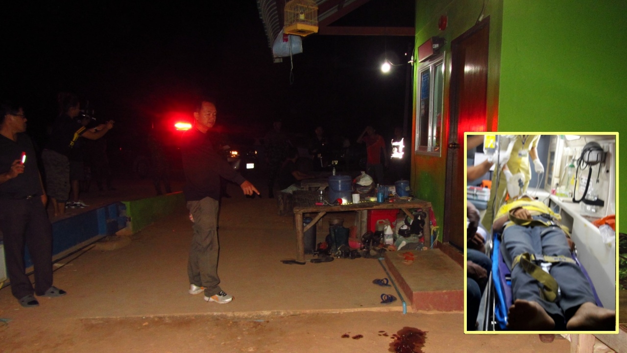 ที่เกิดเหตุบริเวณแคร่ไม้ไผ่ หน้าเครื่องชั่งน้ำหนักกลางหมู่บ้าน หมู่ 11 บ้านประสานสุข มีผู้ถูกยิงบาดเจ็บสาหัส ทราบชื่อภายหลังคือ นายเรือง วันดี อายุ 49 ปี อดีตผู้ใหญ่บ้านหมู่ 11 ต.ลานสัก ถูกยิงเข้ากกหูขวา ลำคอ และไหล่ซ้าย รวม 3 แห่งชาวบ้านนำตัวส่ง รพ.ลานสัก แล้วส่งต่อไปเสียชีวิตที่ รพ.อุทัยธานี